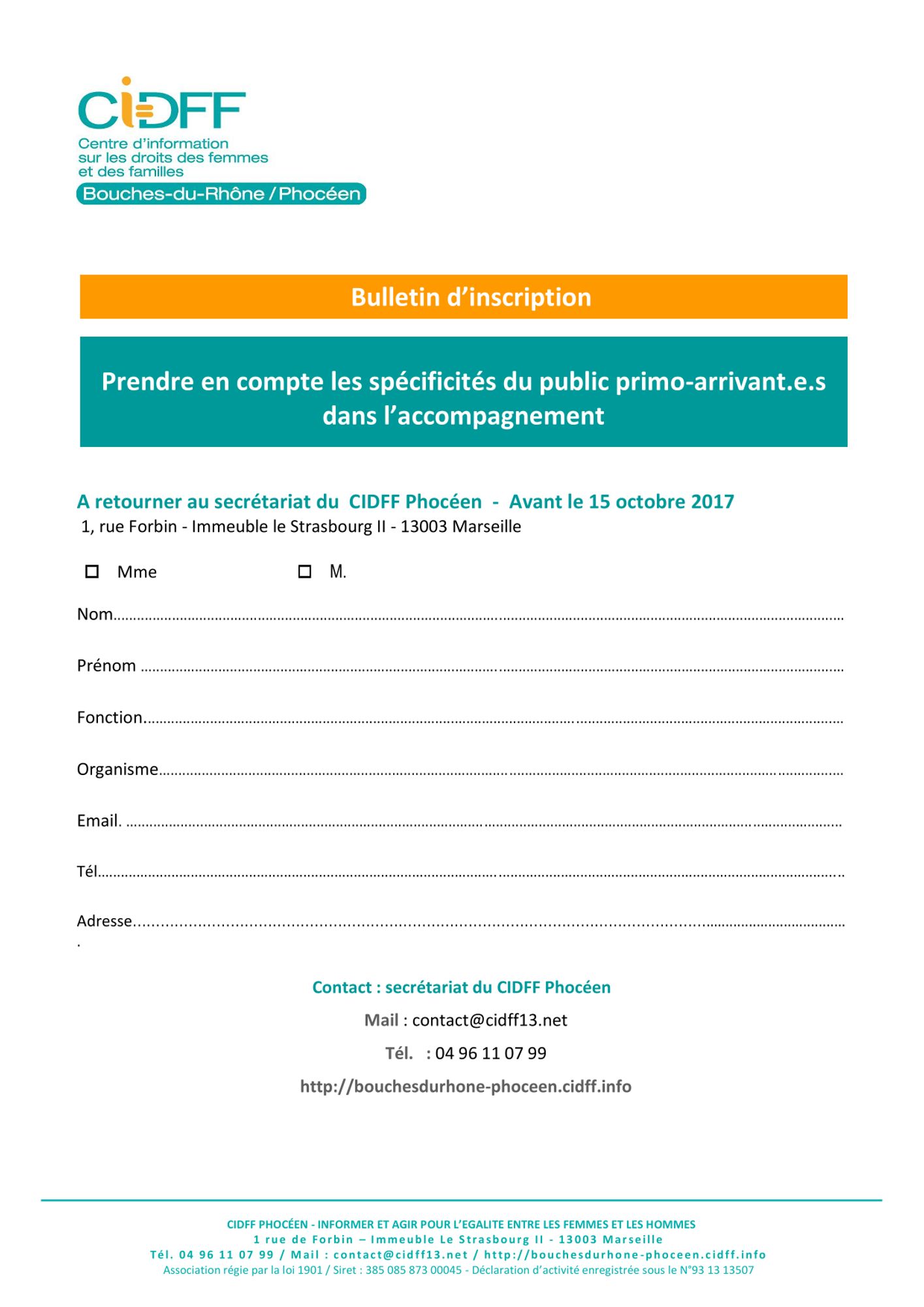 Proposée par le CIDFF Phocéen. Inscriptions jusqu'au 15 octobre 2017