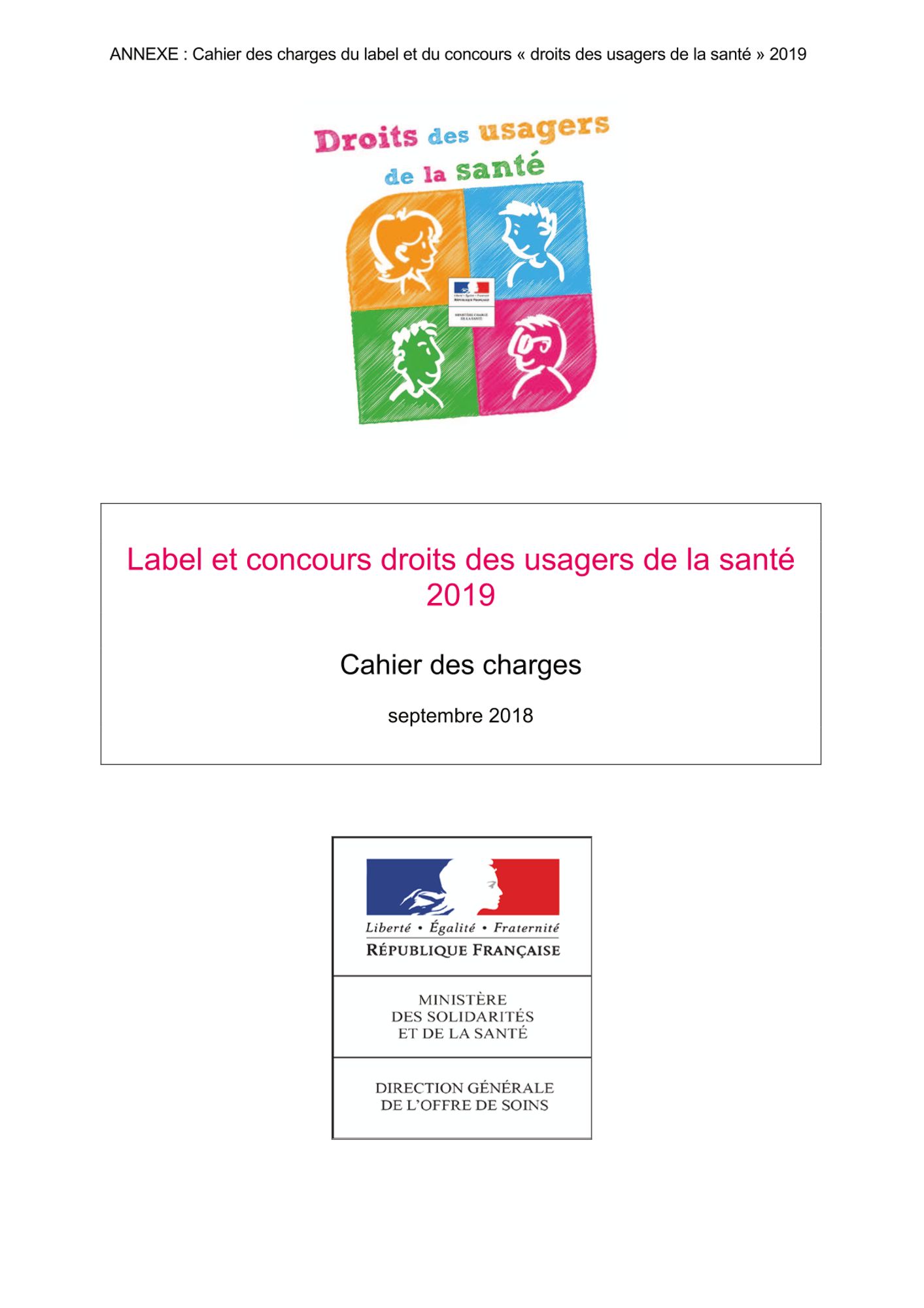 Le Ministère des solidarités et de la santé renouvelle le dispositif de labellisation, complété par le concours national « Droits des usagers de la santé » pour cette année 2019.