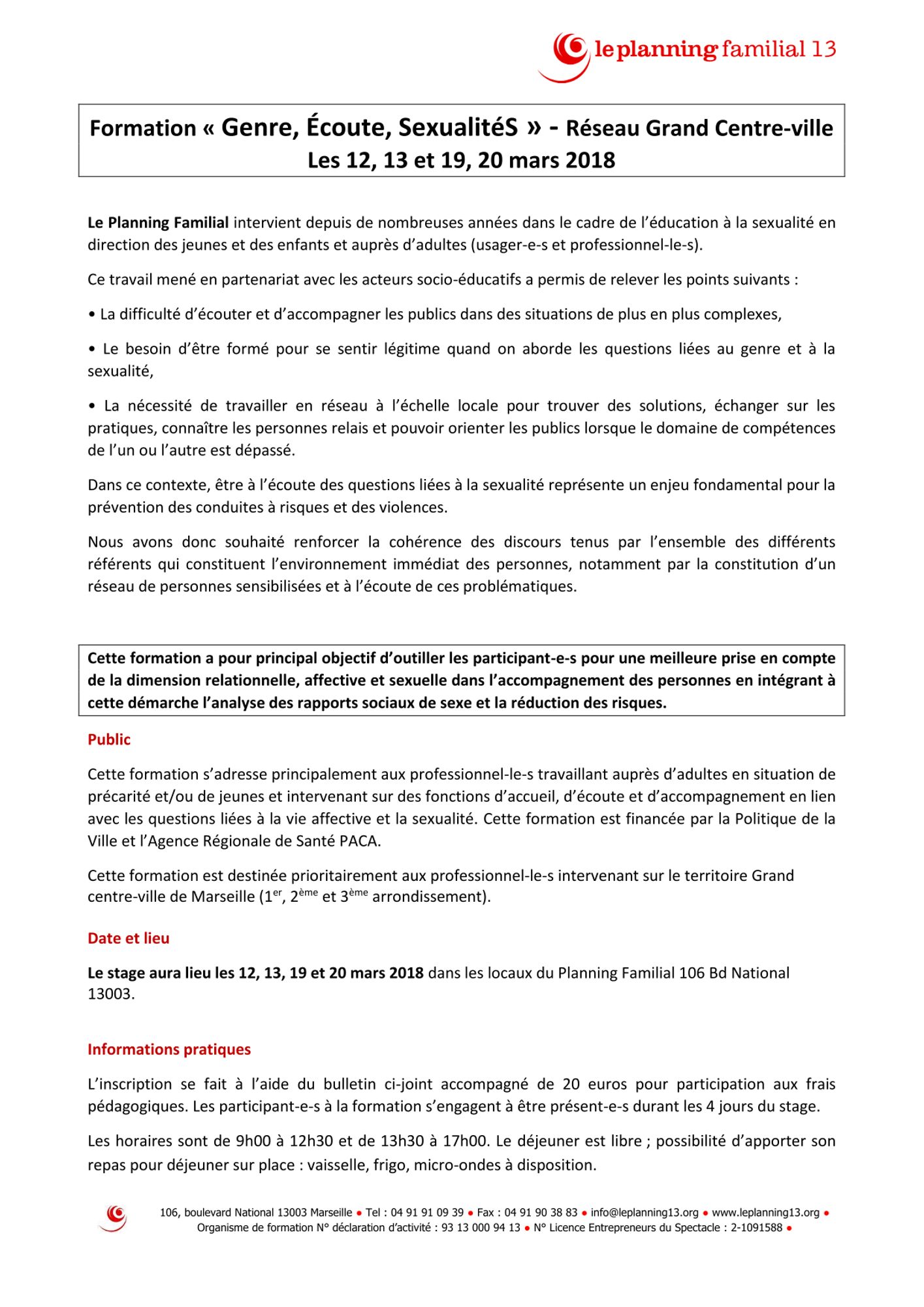 Le Planning familial des Bouches-du-Rhône propose la formation :