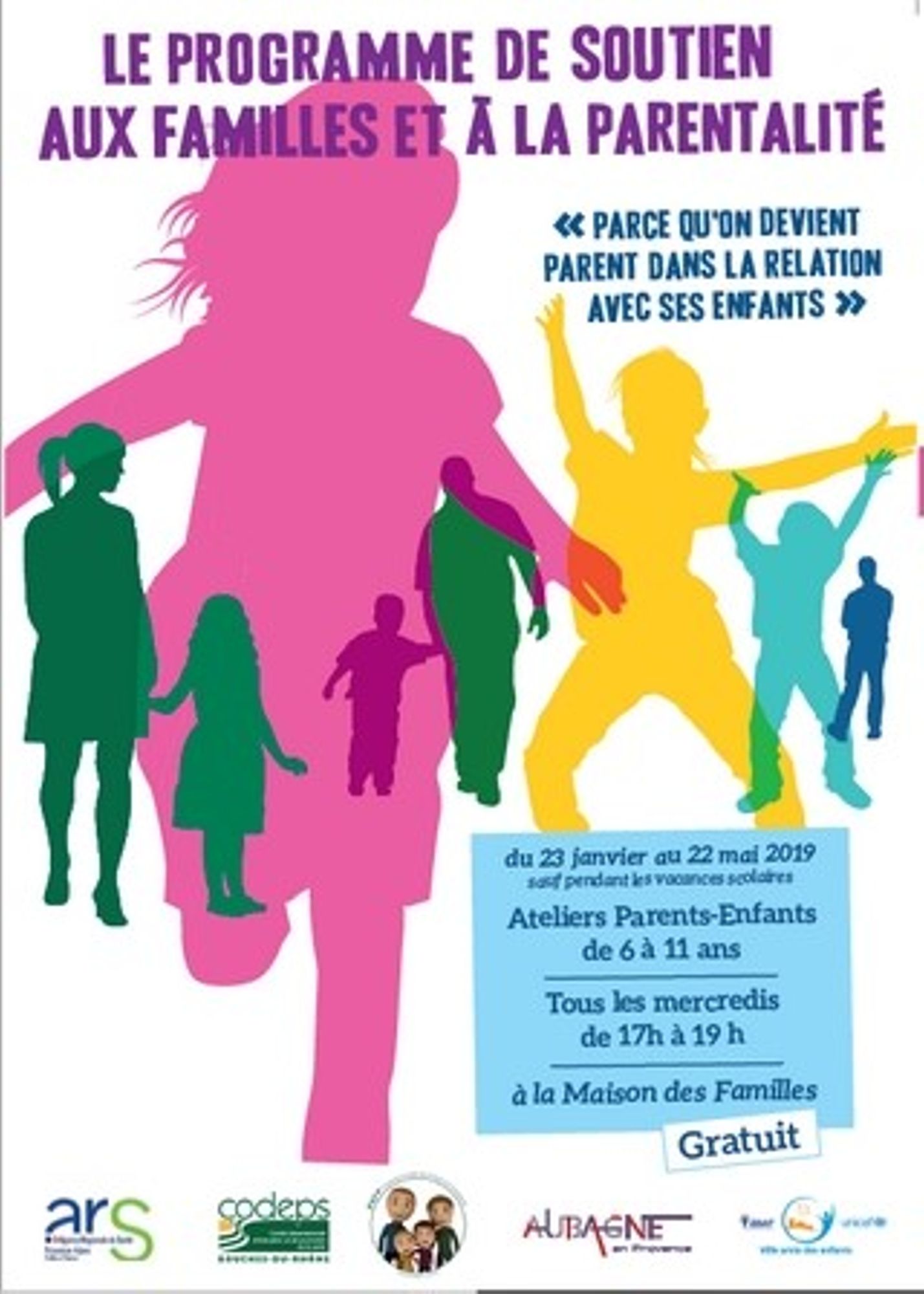 La ville d’Aubagne remet en place cette année le Programme de Soutien aux Familles et à la Parentalité. Ce sont 14 ateliers hebdomadaires parents-enfants permettant de renforcer les compétences parentales, les compétences psychosociales chez les enfants et de favoriser une meilleure communication dans la famille.
