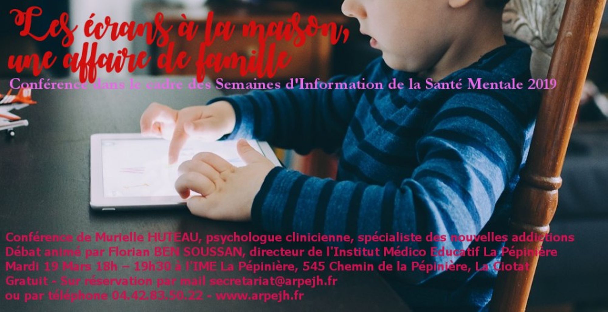 - La Ciotat - Mardi 19 mars 18h-19h30 : Conférence de l'IME la Pépinière : "Les écrans à la maison, une affaire de famille ?"