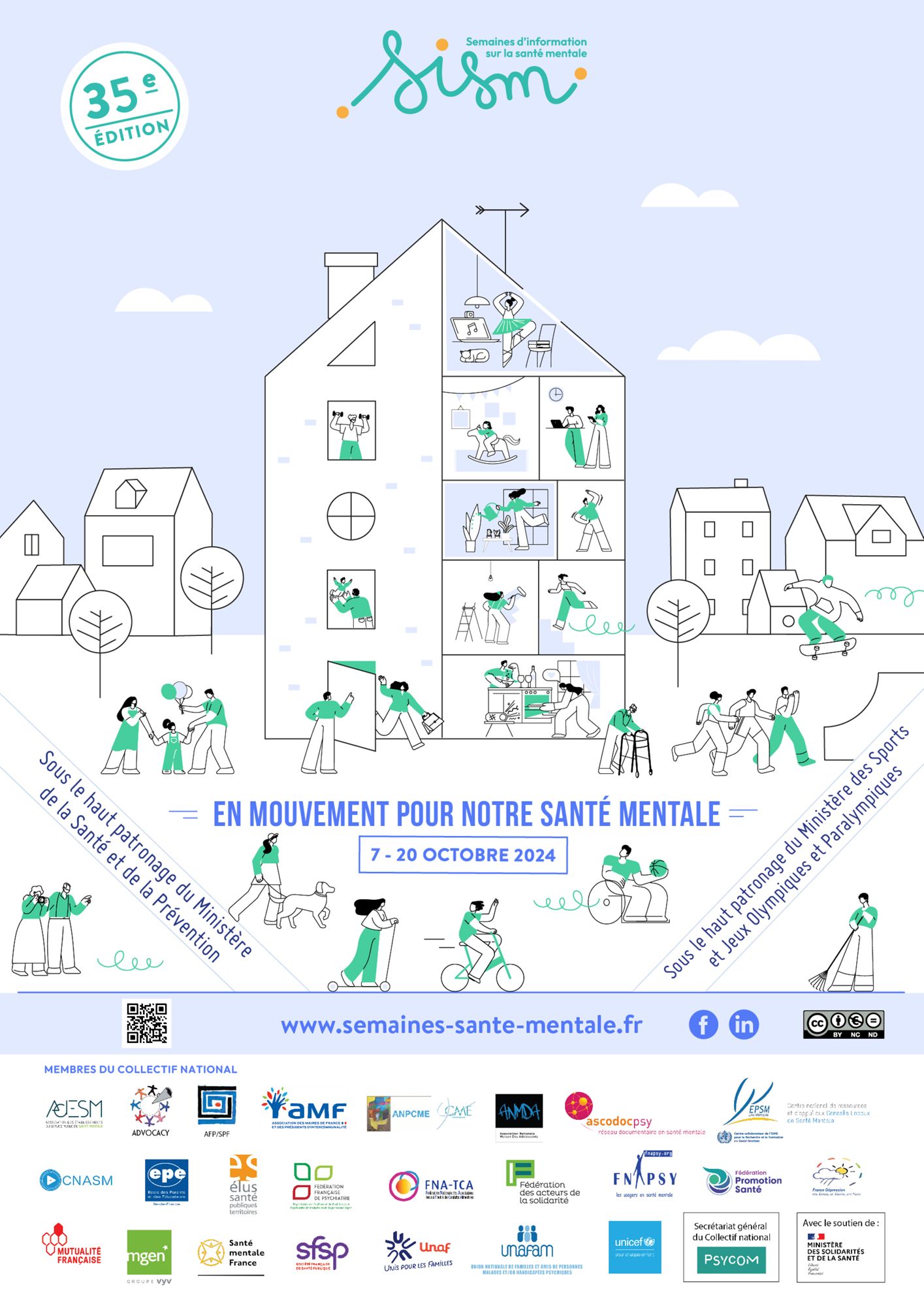Du 07 au 20 octobre 2024 aura lieu la 35e édition des Semaines d'information sur la santé mentale. Cette édition des SISM est placée sous le haut patronage du Ministère de la Santé et de la Prévention et du Ministère des Sports et des Jeux Olympiques et Paralympiques.