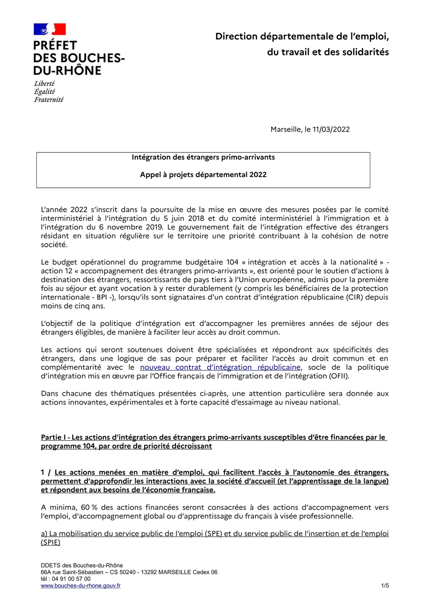 Le budget opérationnel du programme budgétaire 104 « intégration et accès à la nationalité » - action 12 « accompagnement des étrangers primo-arrivants », est orienté pour le soutien d’actions à destination des étrangers, ressortissants de pays tiers à l’Union européenne, admis pour la première fois au séjour et ayant vocation à y rester durablement (y compris les bénéficiaires de la protection internationale - BPI -), lorsqu’ils sont signataires d’un contrat d’intégration républicaine (CIR) depuis moins de cinq ans.