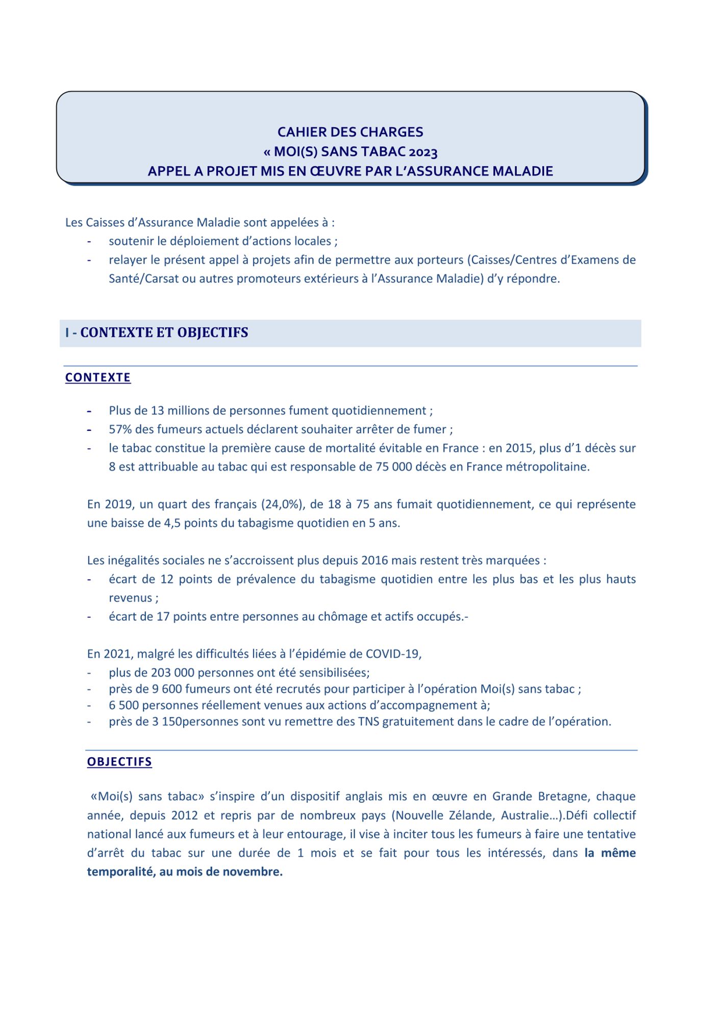 Dans le cadre du Fonds de Lutte contre les Addictions 2023, l'Assurance maladie lance un appel à projets pour une initiative de prévention axée sur le Mois sans tabac. L'objectif de cet appel à candidatures est de soutenir, sous le pilotage de l’ARS et de Santé publique France, la promotion et la diffusion du dispositif de communication et de marketing social « Mois sans tabac », qui contribue à la lutte contre le tabagisme en région.