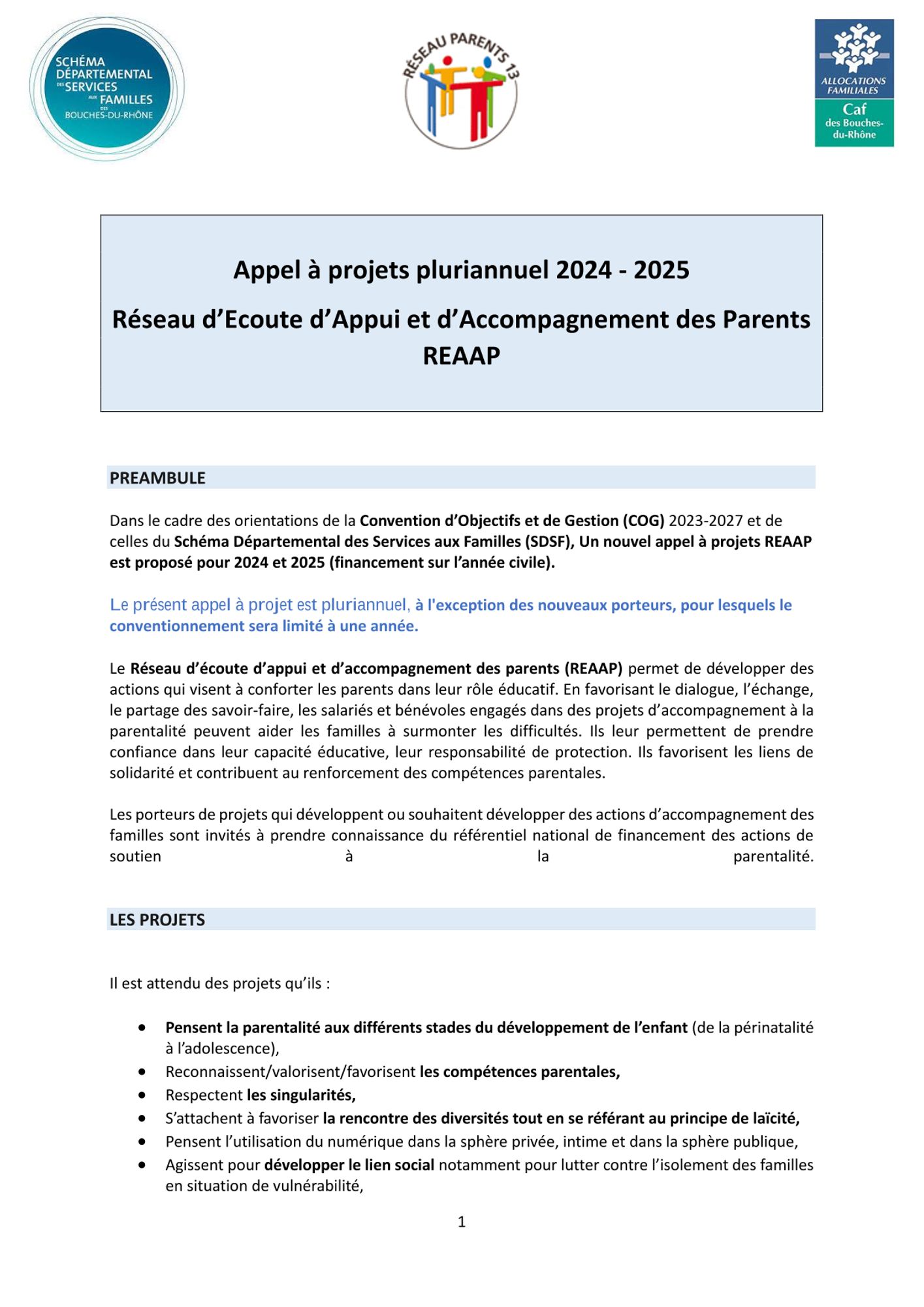 Appel à projets pluriannuel 2024-2025 : Réseau d'écoute d'appui et d'accompagnement des parents