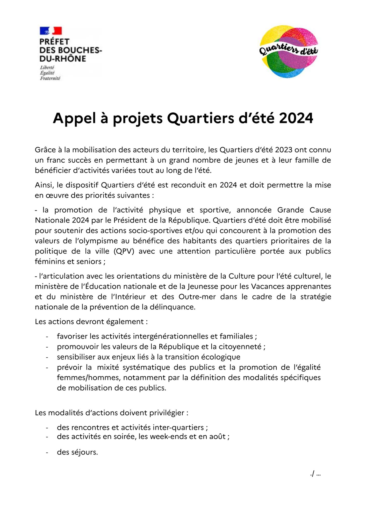 Appel à projets "Quartiers d’été" 2024