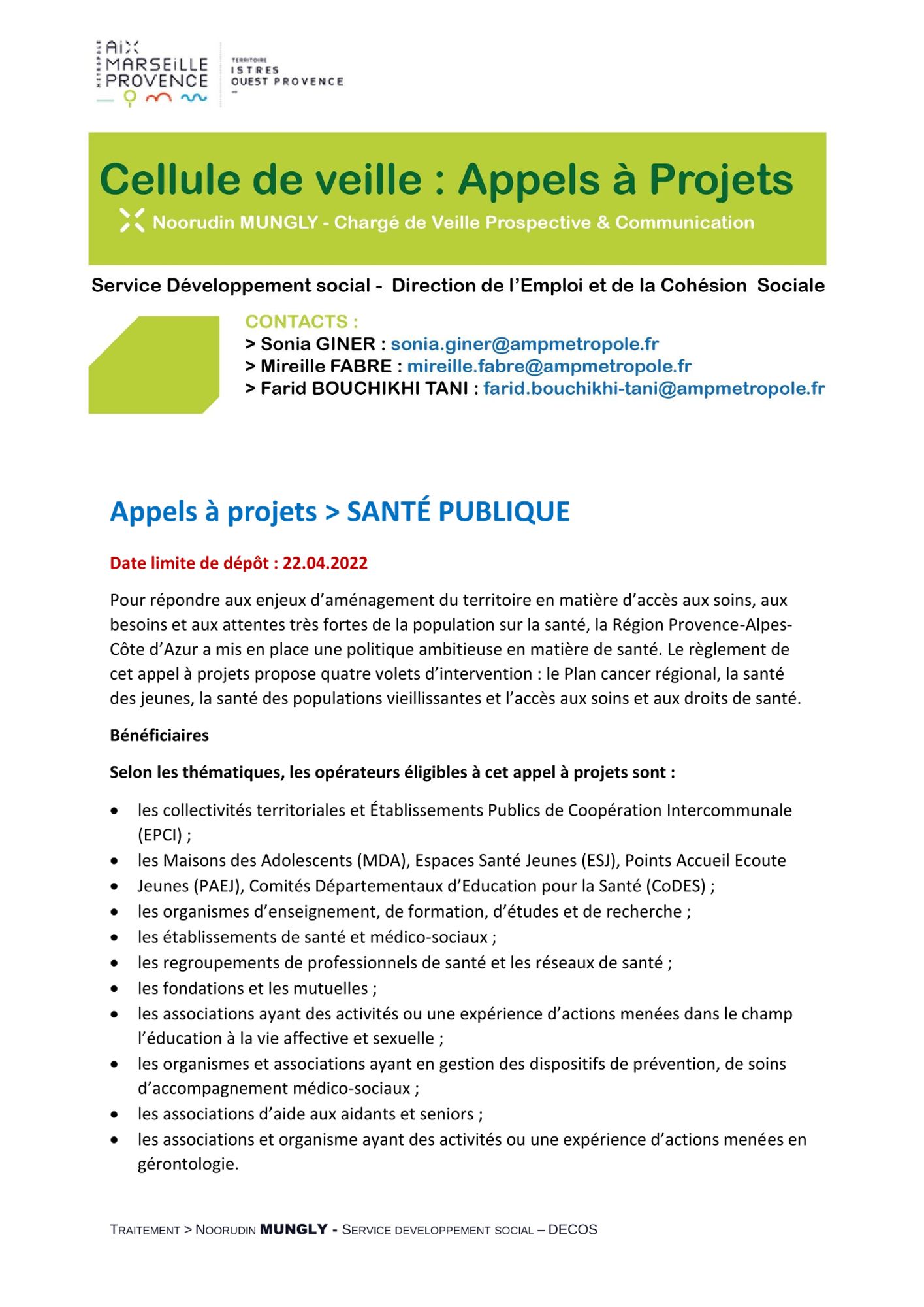 Pour répondre aux enjeux d’aménagement du territoire en matière d’accès aux soins, aux besoins et aux attentes très fortes de la population sur la santé, la Région Provence-Alpes-Côte d’Azur a mis en place une politique ambitieuse en matière de santé. Le règlement de cet appel à projets propose quatre volets d’intervention :