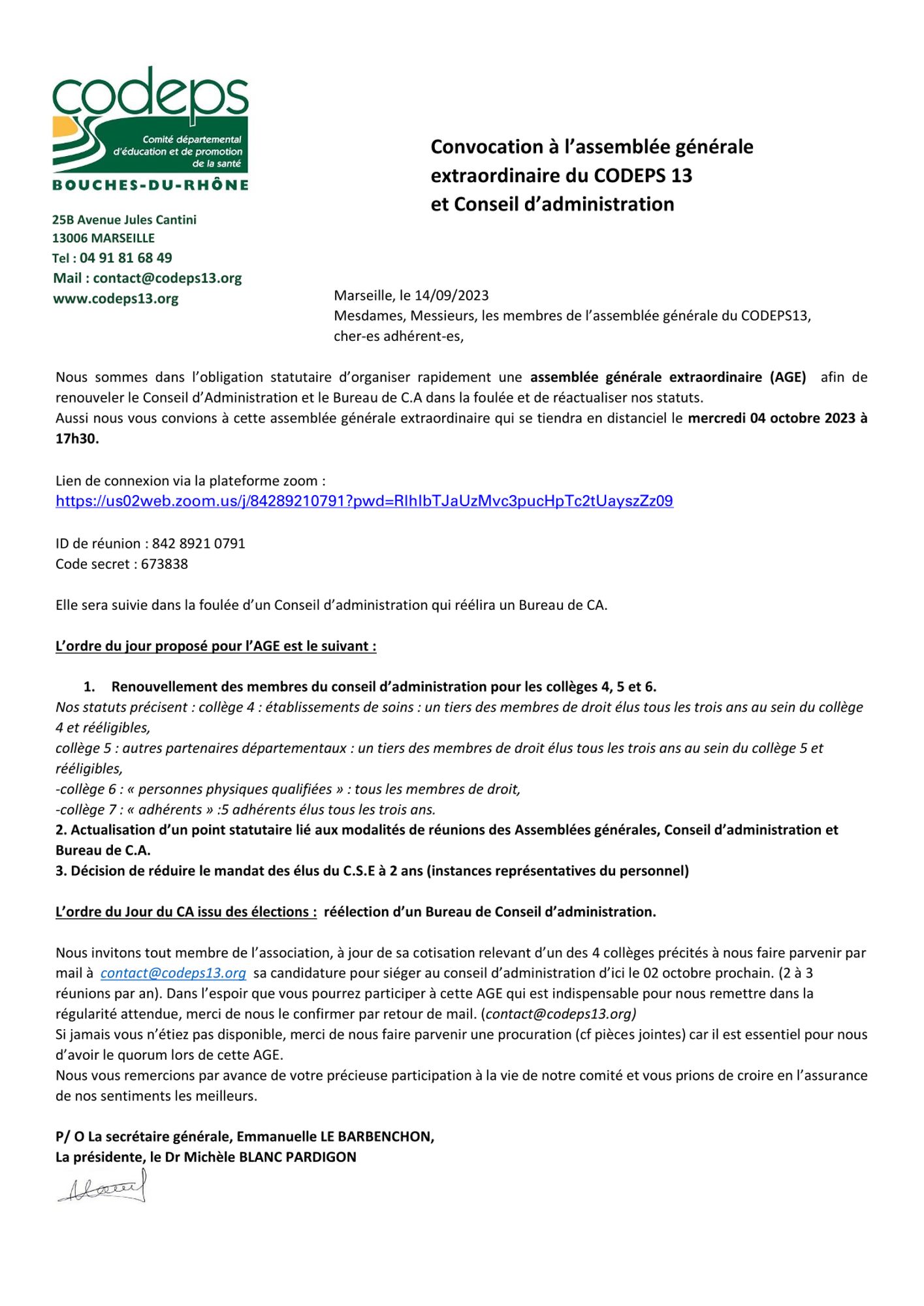 Le CoDEPS13 convie ses adhérent.e.s à une Assemblée générale Extraordinaire (AGE) afin de renouveler le Conseil d'Administration et le Bureau de C.A.