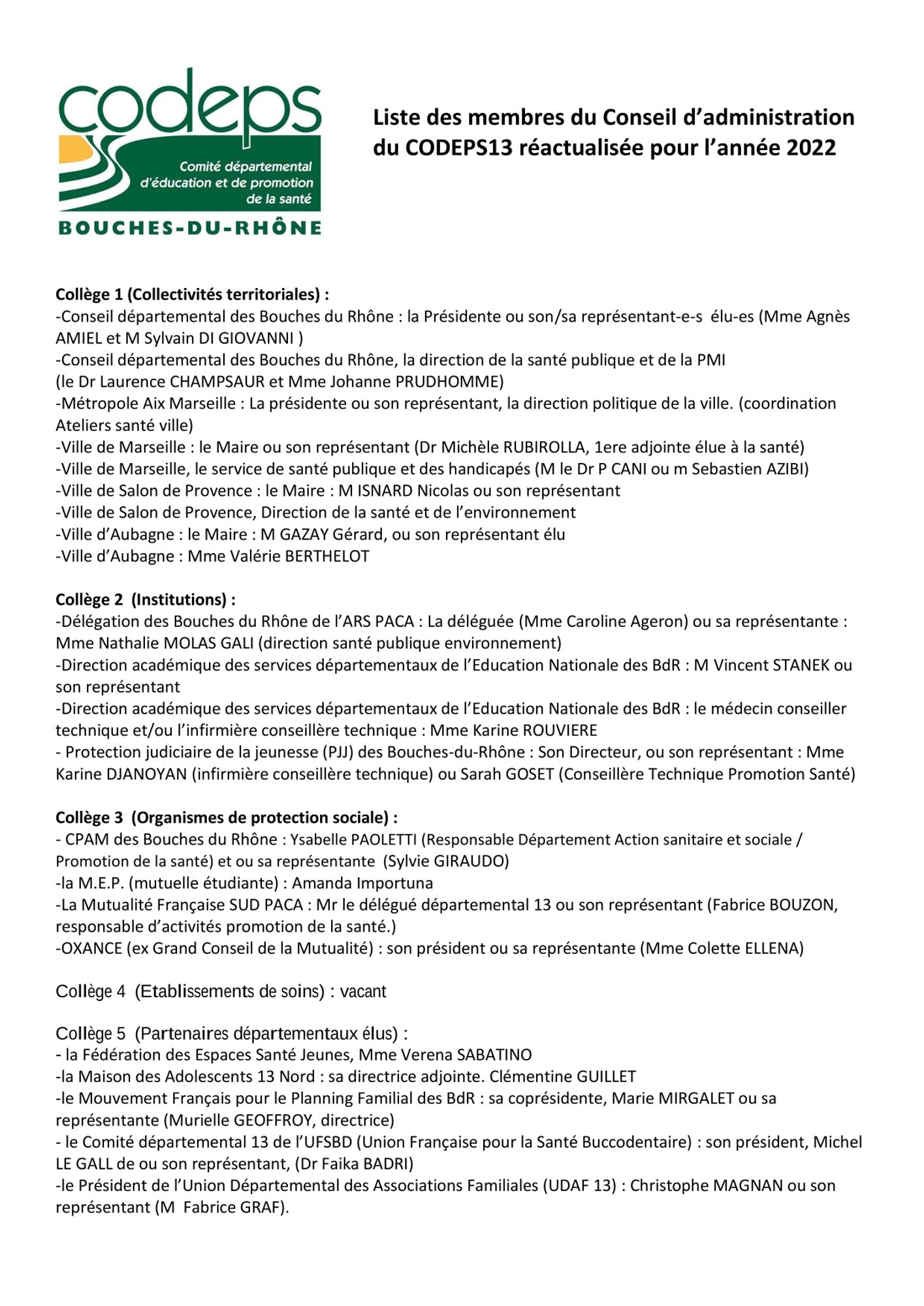 Assemblée Générale Extraordinaire et Conseil d'Administration du CoDEPS13