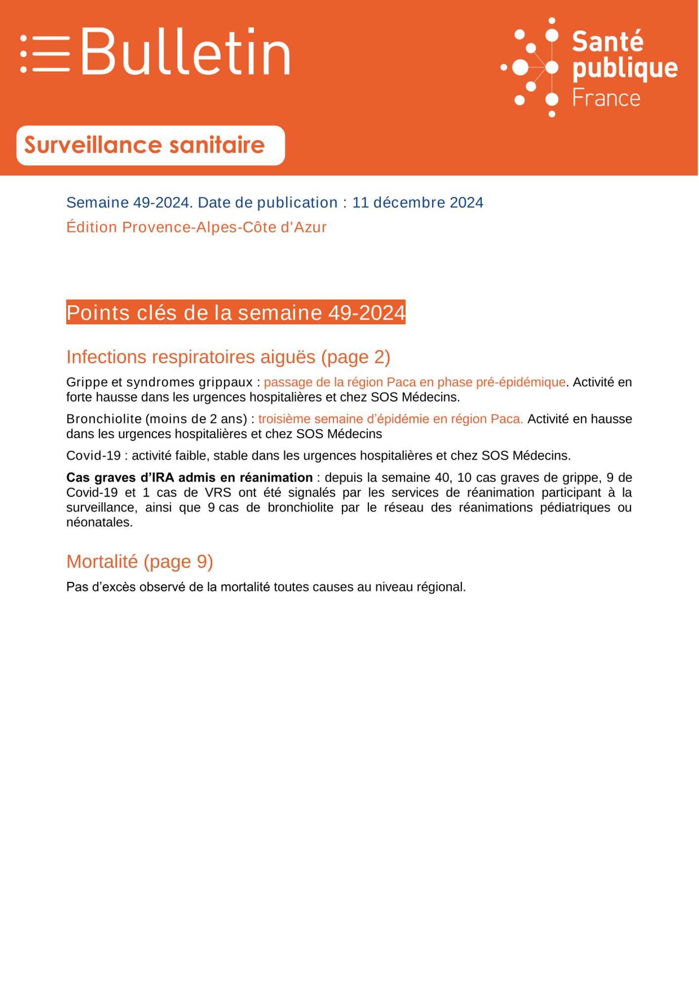 (Source : Bulletin de surveillance sanitaire. Edition PACA. Santé Publique France. Point au 11 décembre 2024)