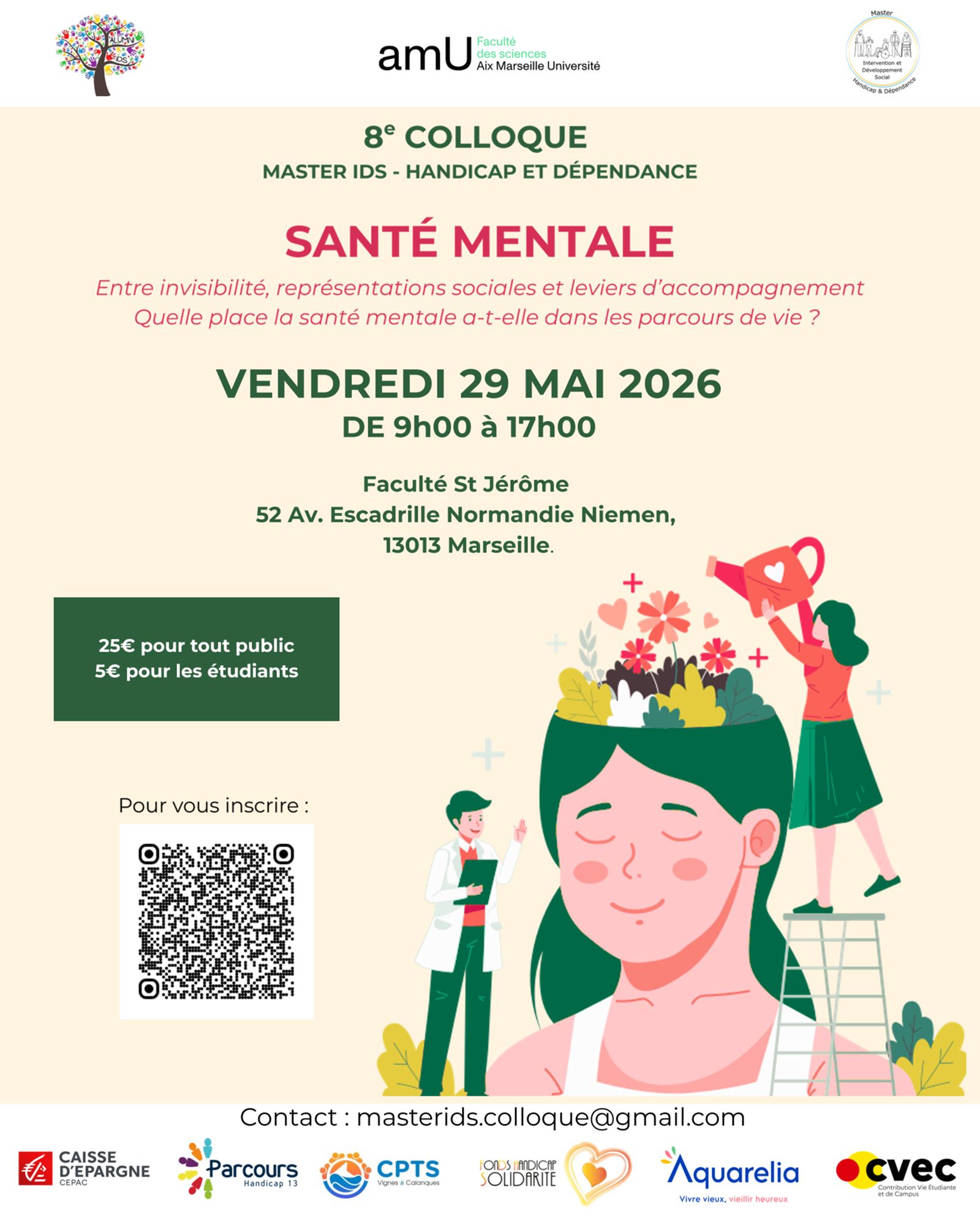 Les étudiant.e.s du Master Intervention et Développement Social, Parcours handicap et dépendance d’Aix-Marseille Université organisent leur 8ème colloque annuel sur le thème de la santé mentale.