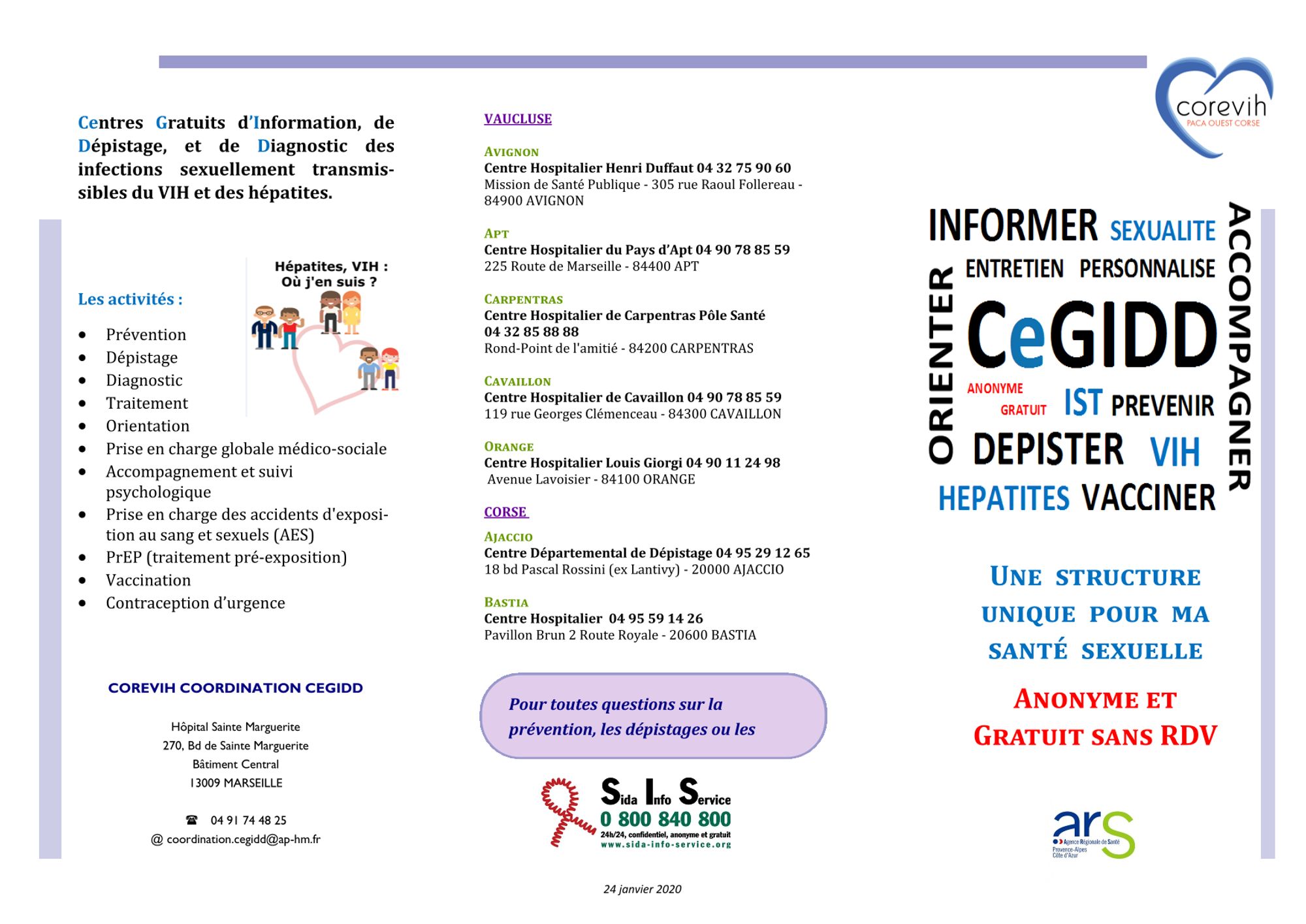 Les CeGIDD (Centres Gratuits d’Information, de Dépistage et de Diagnostic des infections sexuellement transmissibles, du VIH et des hépatites) sont ouverts.