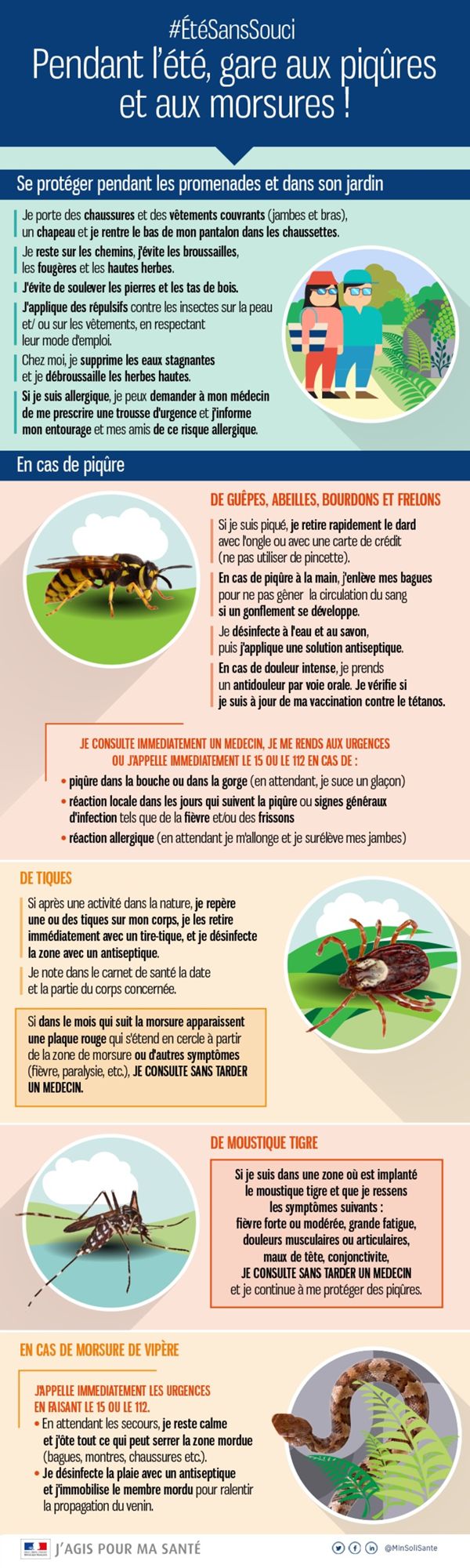 - En balade ou dans son jardin : comment se protéger des piqûres et morsures des « petites bêtes » de l’été (moustique tigre, tique, vipère, guêpe et frelons…) et se soigner ;