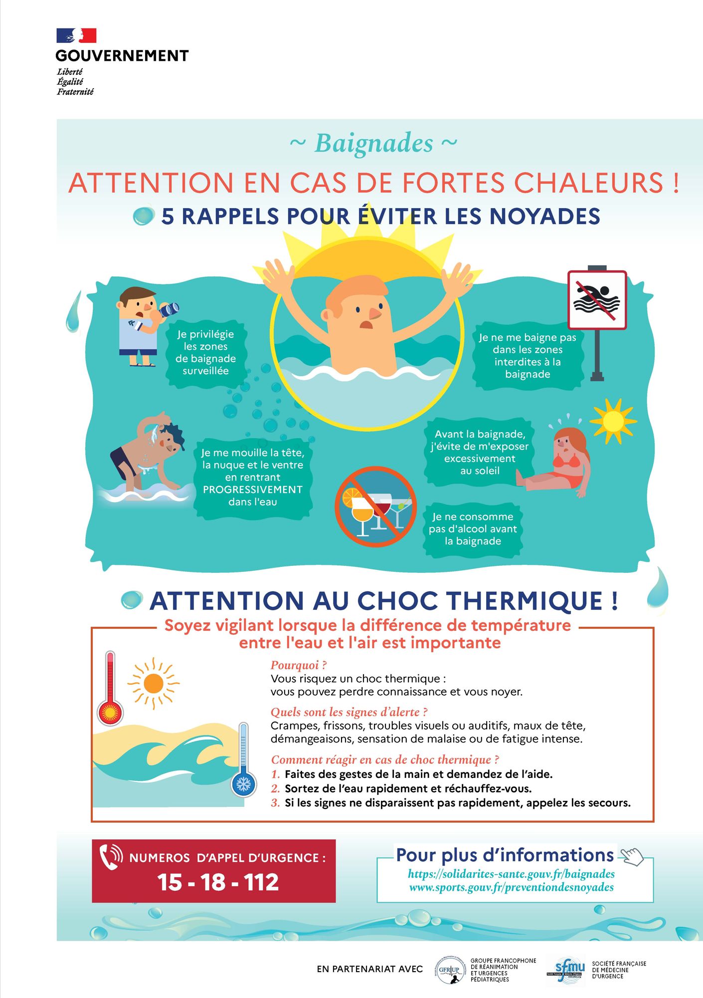 - Au bord de l’eau : comment se protéger du soleil et se baigner sereinement dans une eau de qualité, pêcher à pied en toute sécurité et pouvoir traiter une piqûre de méduse ;