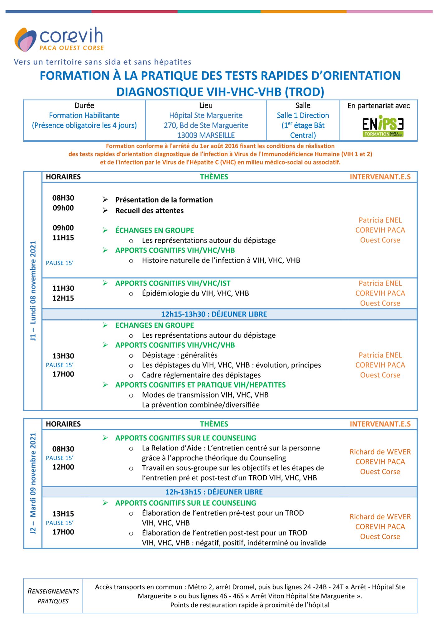 Le COREVIH Paca Ouest Corse organise en partenariat avec l'ENIPSE une formation habilitante à la pratique des tests rapides d’orientation diagnostique VIH-VHC-VHB (TROD).