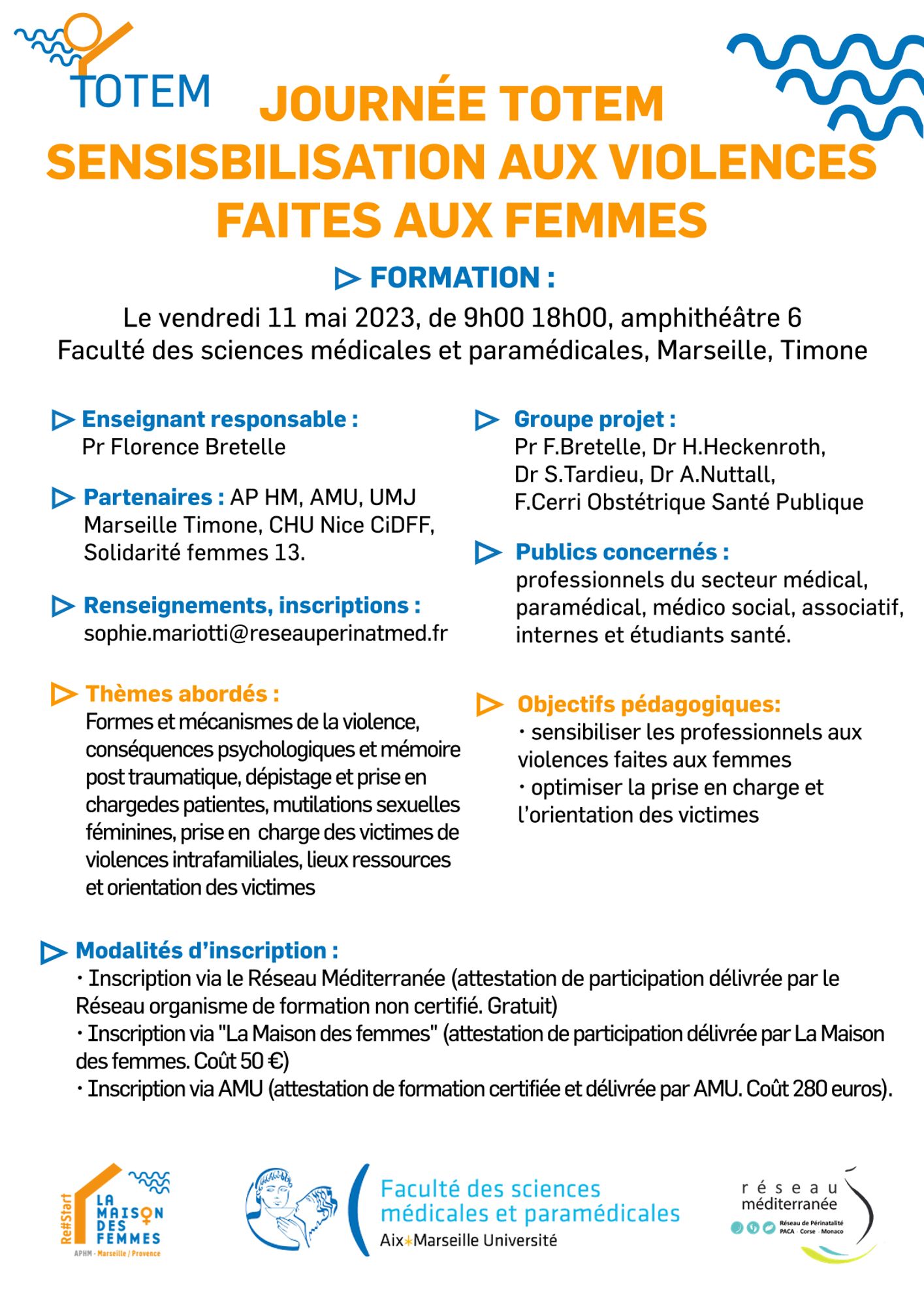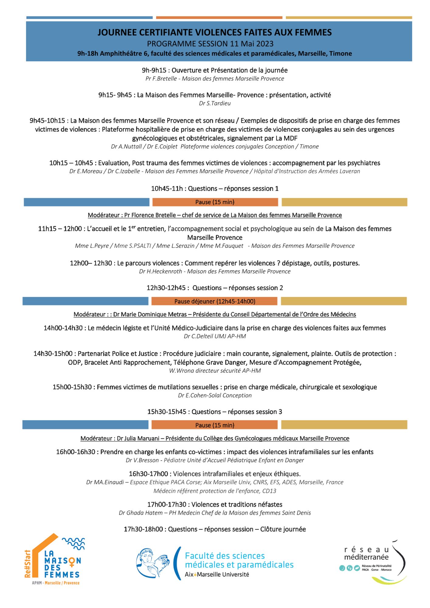 Le Réseau Méditéranée Perinat en collaboration avec Aix-Marseille Université et la Maison des femmes organisent une journée certifiante à la faculté des sciences médicales et paramédicales de la Timone.