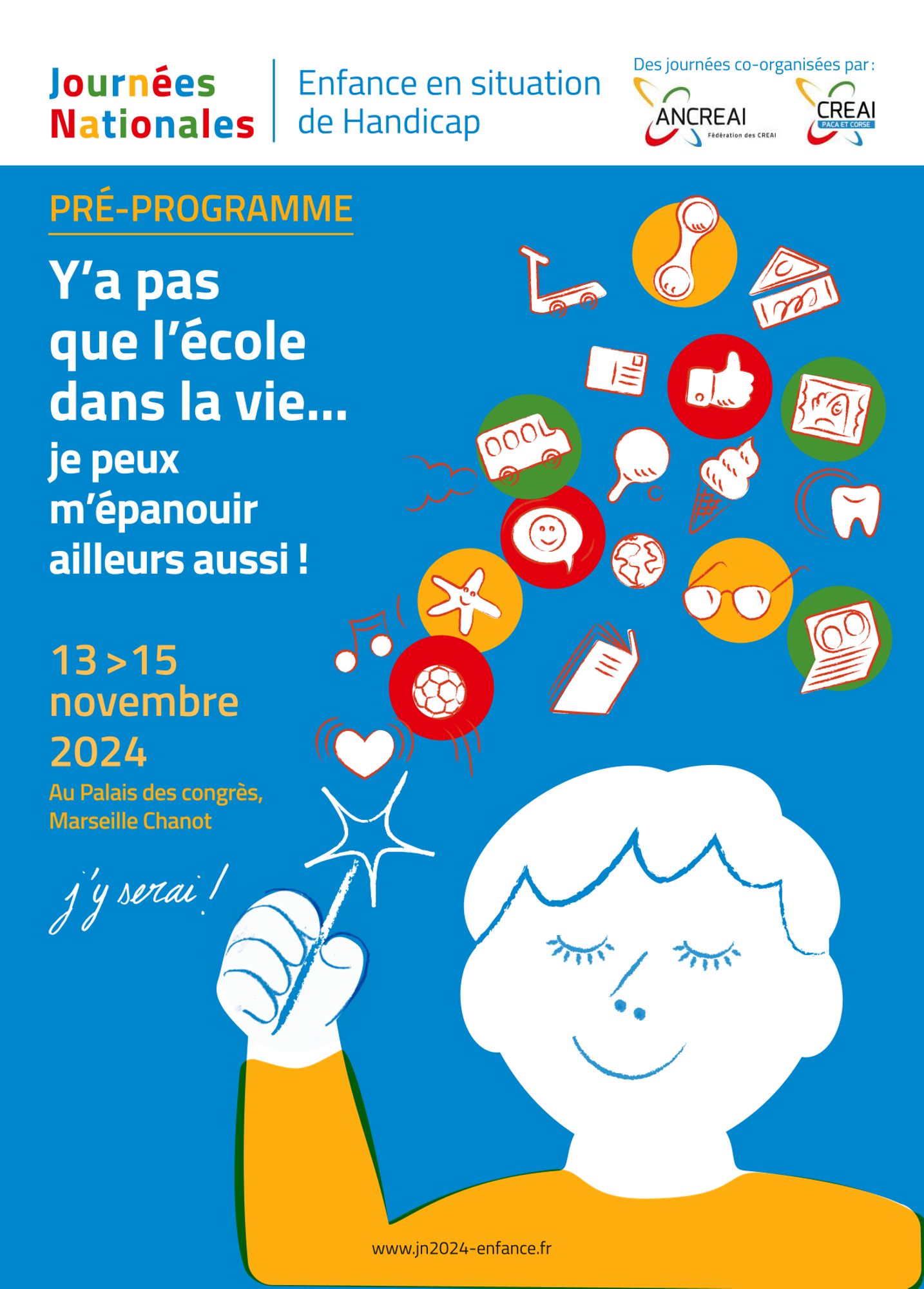 Un an après la 1ère édition des Journées nationales Ecole Inclusive, la Fédération des CREAI et le CREAI PACA et Corse vous invitent, du 13 au 15 novembre 2024 à Marseille, aux Journées Nationales « Y’A PAS QUE L’ECOLE DANS LA VIE, JE PEUX M’EPANOUIR AILLEURS AUSSI !»