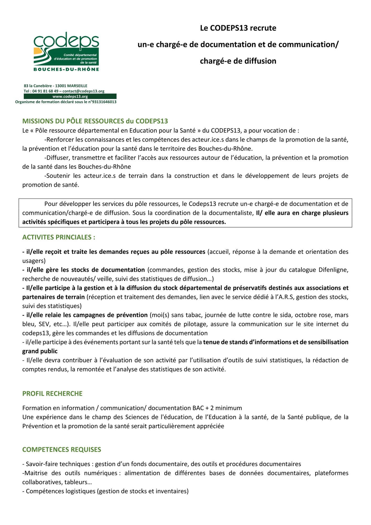 Vous avez une formation en information / communication / documentation, vous maitrisez les techniques documentaires, vous êtes intéressé.e par les questions de santé publique et de prévention ? Ce poste est peut-être pour vous !