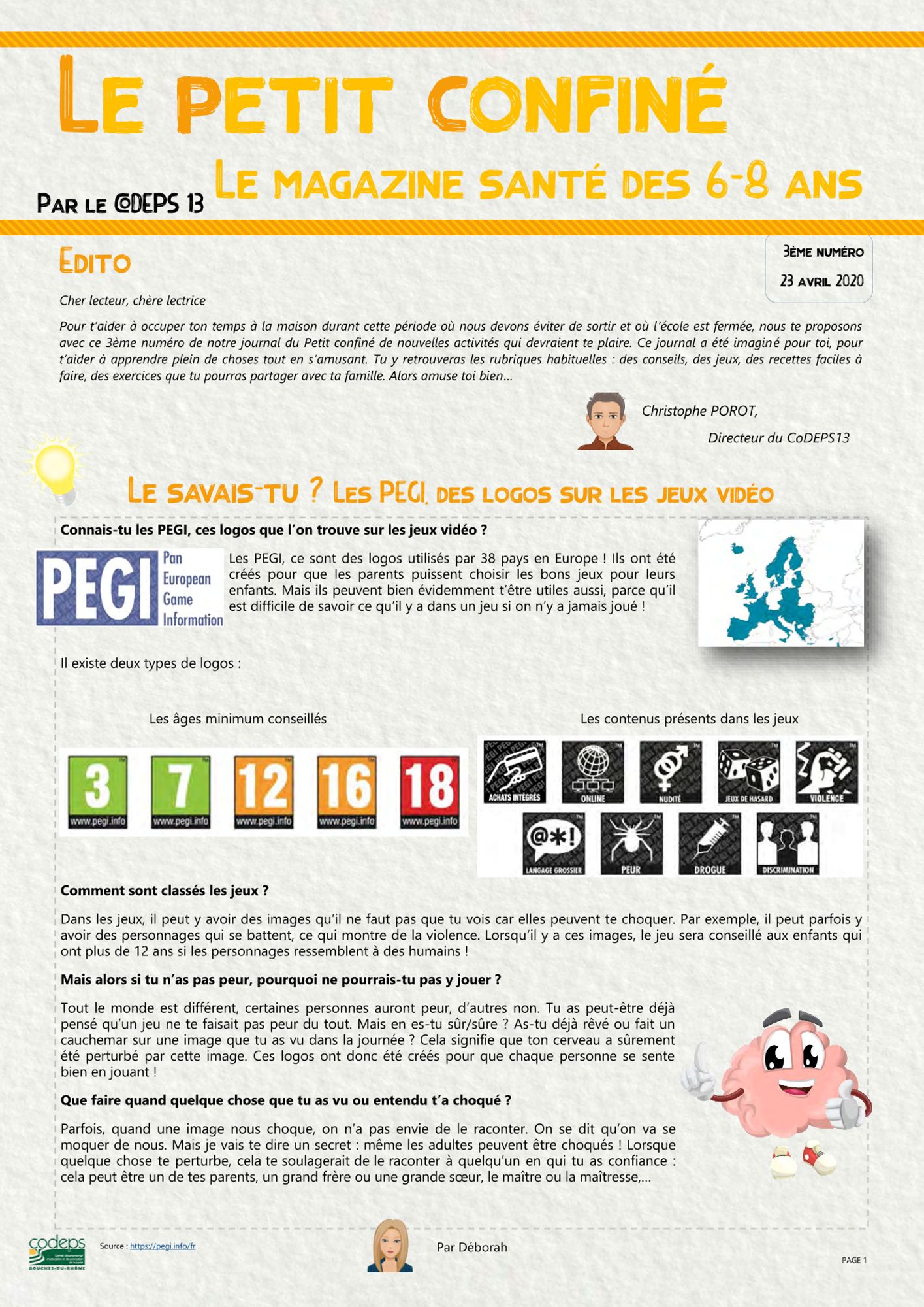Je viens de recevoir le "Le Petit Confiné" du CoDEPS. Il va nous être très utile en pédopsychiatrie ! Merci !