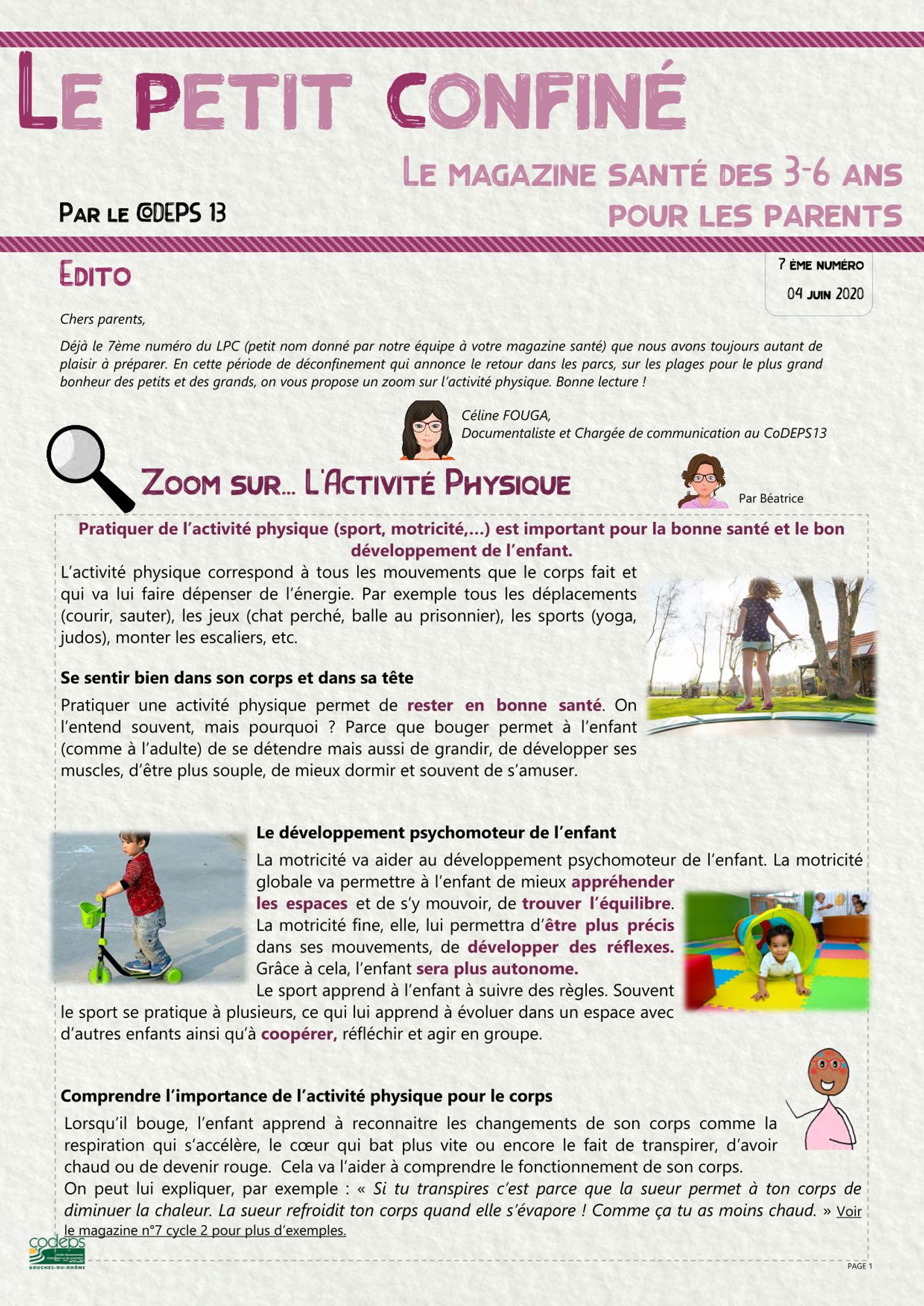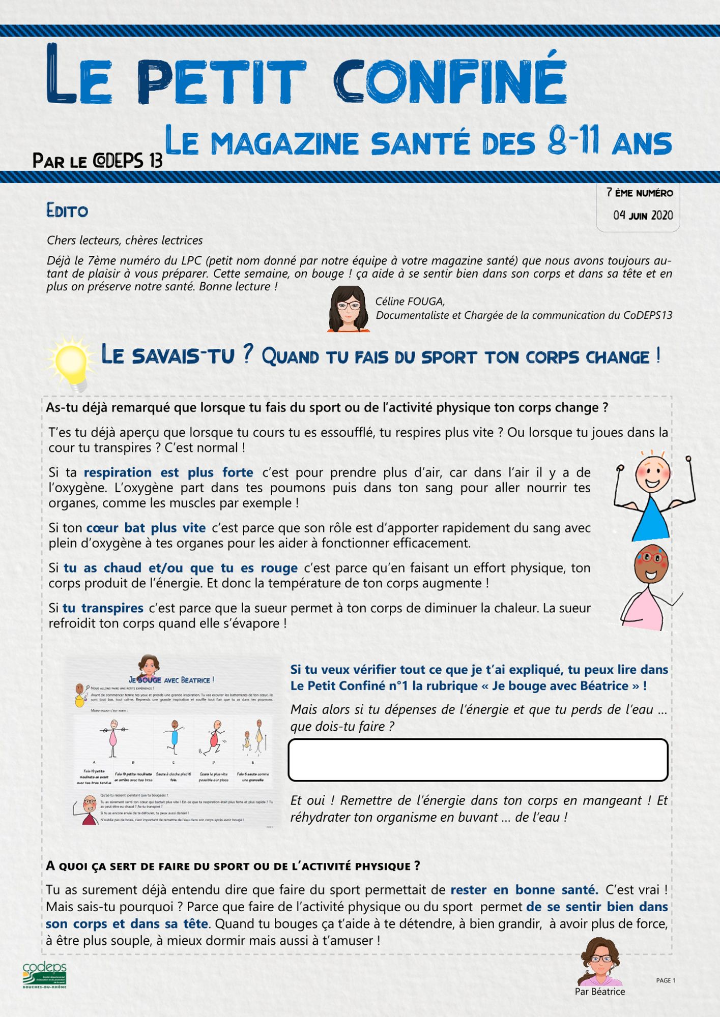 Dans ce numéro, les enfants et leurs parents pourront découvrir des rubriques sur l'activité physique, la dégustation à l'aveugle, une recette avec des légumes de saison !