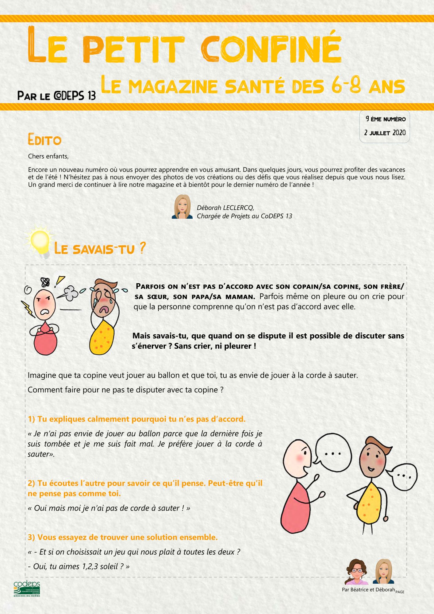 Dans ce numéro vous retrouverez des rubriques ludiques (quiz, défi, jeu, activité et recette) sur les thématiques : hygiène, compétences psychosociales, activité physique et alimentation !