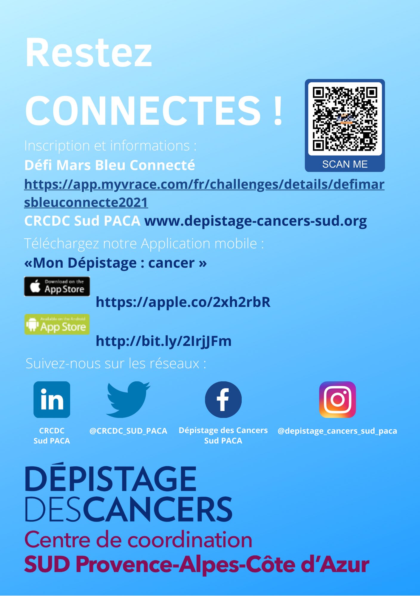 A l’occasion de « Mars Bleu 2021 », campagne de sensibilisation au dépistage du cancer colorectal, le centre de Dépistage des Cancers (CRCDC Sud Paca) innove et propose un défi connecté dont l'objectif est de :