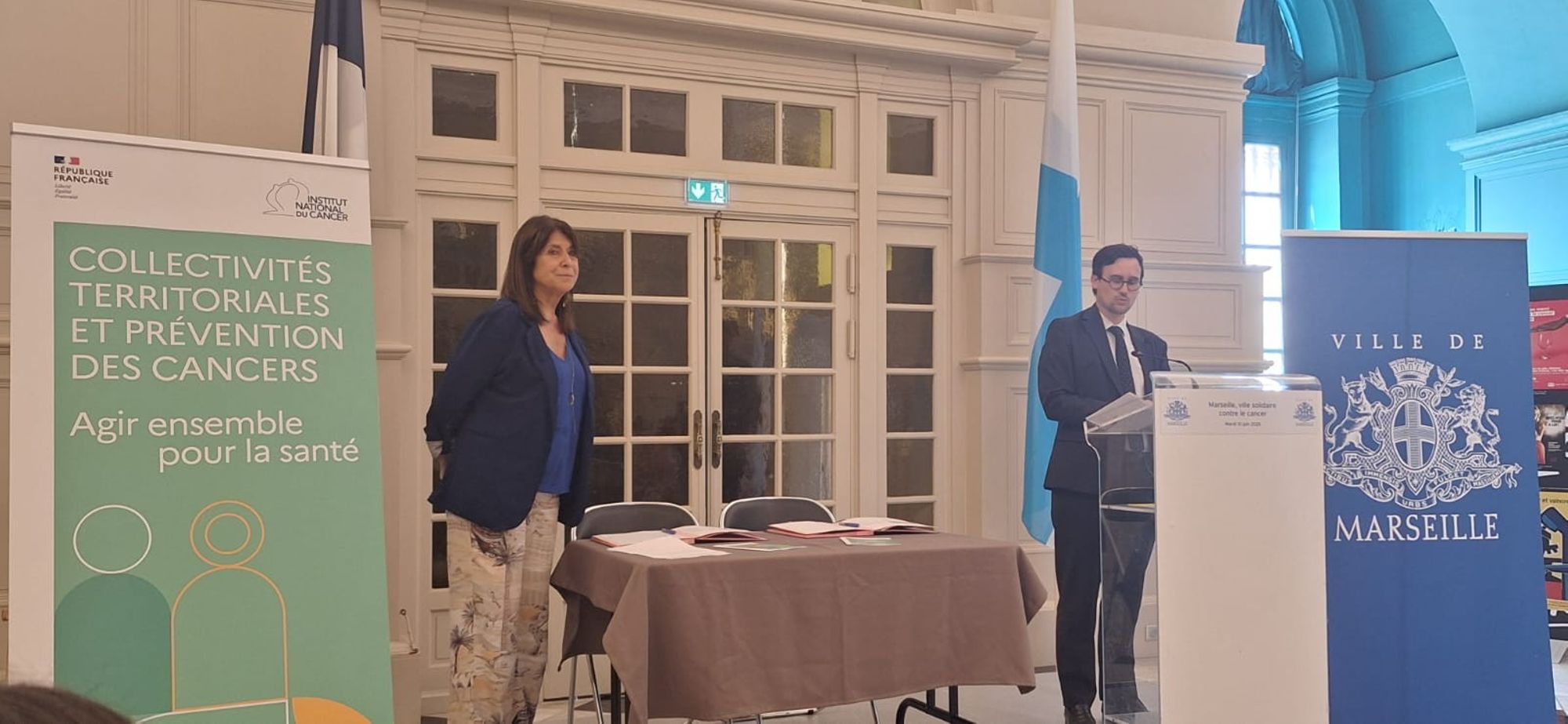 À l’occasion du lancement de son opération « Marseille Ville solidaire contre le cancer », la Ville de Marseille signe la charte du Club des « collectivités territoriales et prévention des cancers » de l’Institut national du cancer, en présence de Michèle RUBIROLA, première adjointe au Maire en charge de la Santé et Nicolas Scotté, directeur général de l’Institut national du cancer.