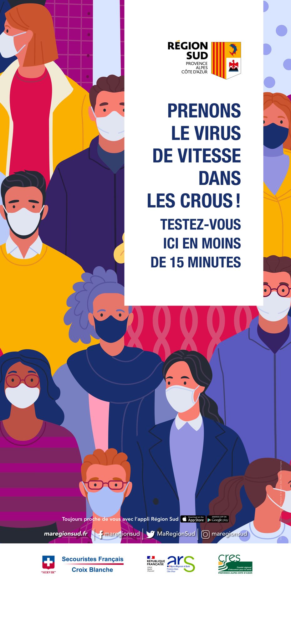 La Région Sud Provence Alpes Côte d’Azur et l’ARS PACA lancent aujourd’hui une campagne de dépistage rapide antigénique de la COVID-19 auprès des étudiants dans les résidences étudiantes de la région, en partenariat avec les CROUS, la Croix Blanche (qui assurera les dépistages) et notre réseau des comités d’éducation pour la santé de la région.