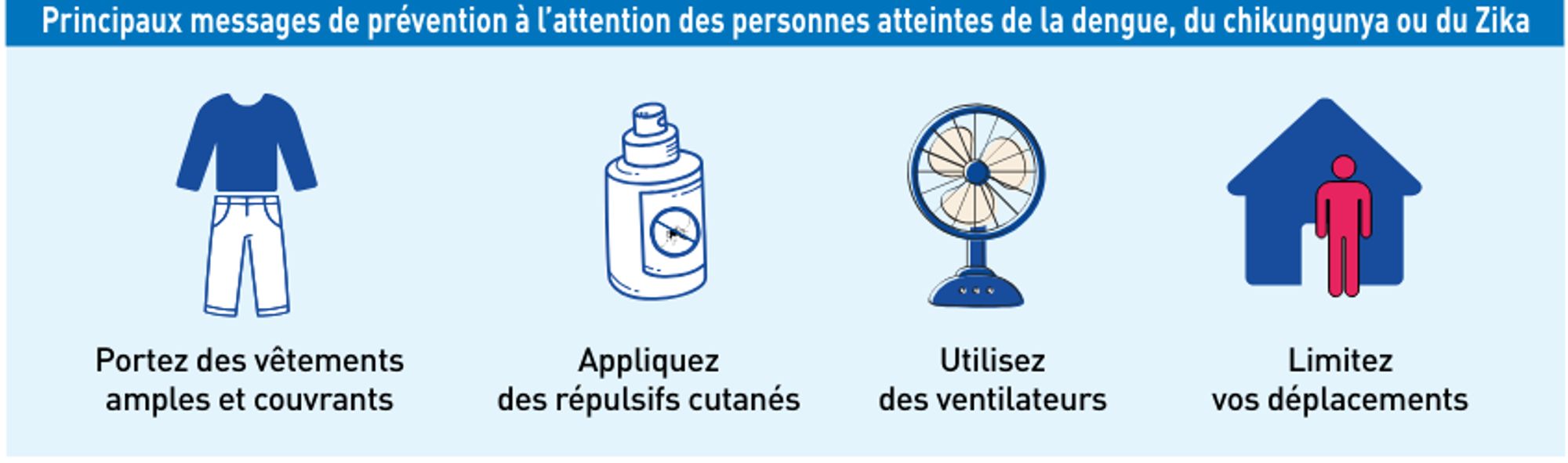 La détection d’un cas de dengue, chikungunya ou Zika donne lieu à des investigations épidémiologiques et entomologiques pour déclencher rapidement des mesures de lutte antivectorielle et ainsi limiter le risque de transmission locale du virus. Lorsqu’un cas autochtone est identifié (personne n’ayant pas voyagé récemment en zone de circulation des virus, s’étant contaminée localement), les mesures de lutte antivectorielle sont renforcées avec la réalisation de deux traitements adulticides de démoustication dans un périmètre élargi (300 m). Une recherche active de cas est également mise en œuvre autour des foyers de cas autochtones, pour déterminer l’étendue de la transmission locale et ajuster le périmètre du traitement de lutte antivectorielle si nécessaire. Cette recherche active est réalisée conjointement par Santé publique France et les agences régionales de santé concernées. Elle repose sur la sensibilisation des professionnels de santé des secteurs concernés et de la population générale, et sur des enquêtes en porte-à-porte dans le voisinage des cas connus pour identifier d’éventuels autres cas. Des mesures adaptées de sécurisation des produits issus du corps humain (sang, greffes…) sont également mises en œuvre.