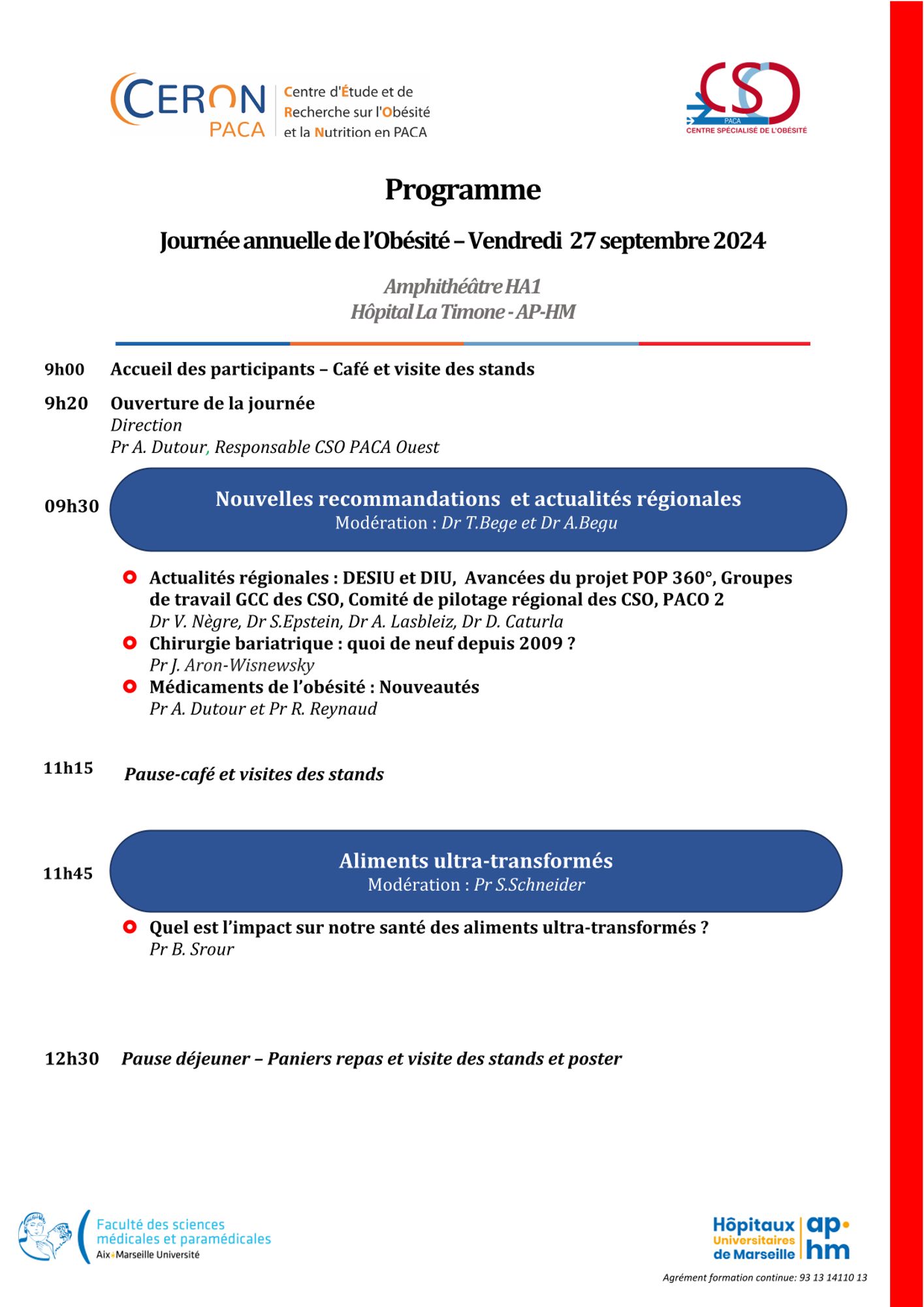 Le Centre d'Étude et de Recherche sur l'Obésité et la Nutrition en PACA (CERON) s'associe aux Centres Spécialisés de l'Obésité de PACA (CSO) pour vous convier à la Journée régionale annuelle de l'Obésité de l'enfant et de l'adulte.
