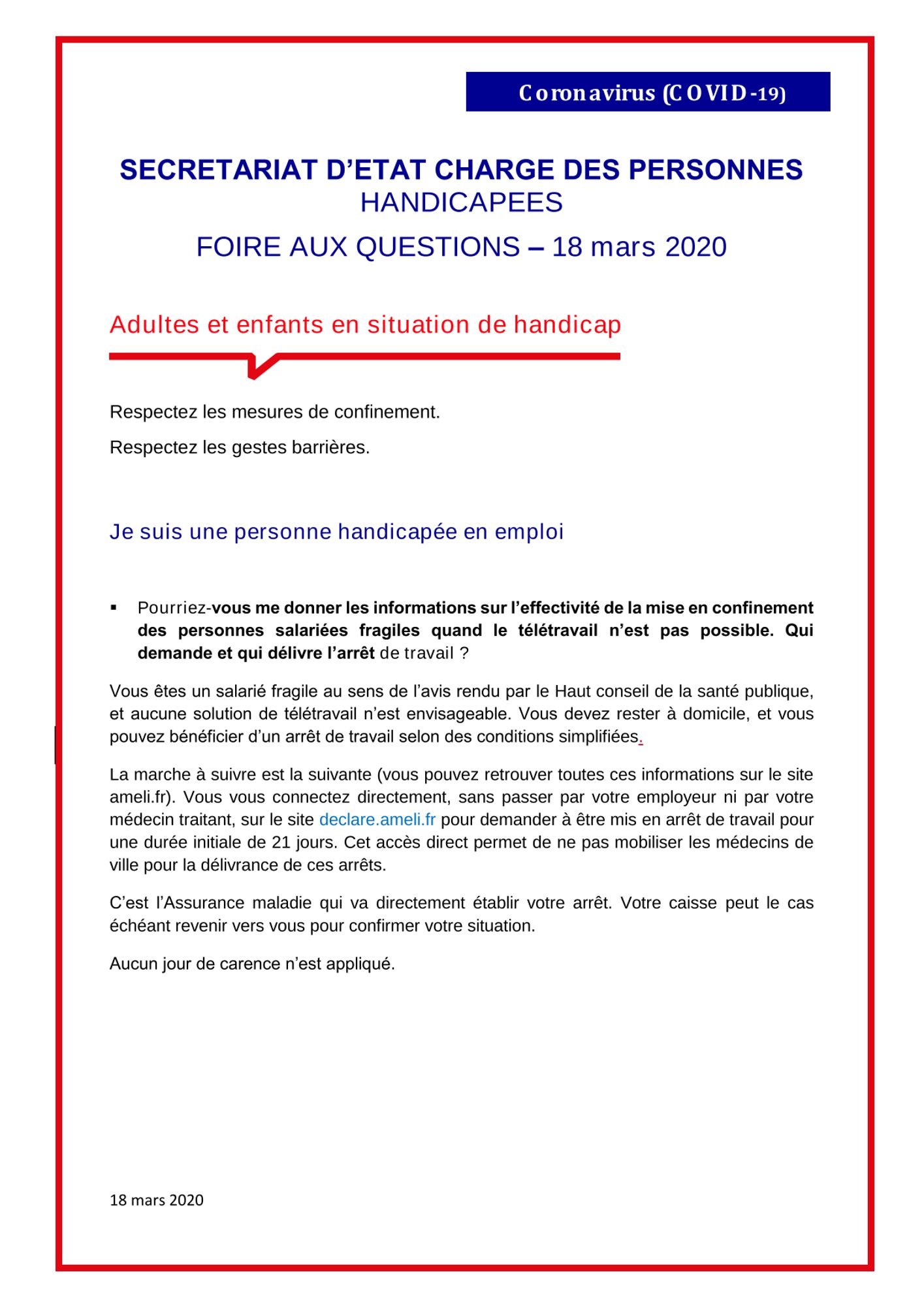 Foire aux questions du secrétariat d'Etat chargé des personnes handicapées
