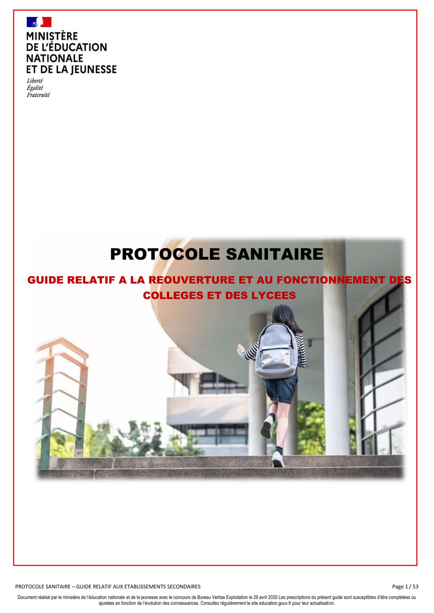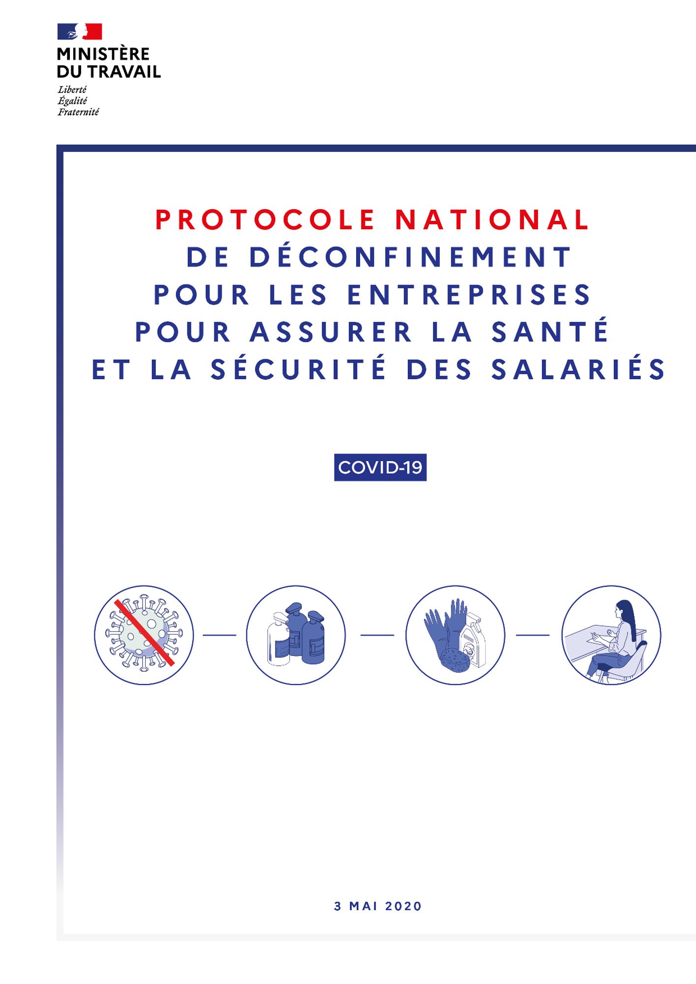 Protocoles de déconfinement Des guides à télécharger pour la reprise des activités Protocole national de déconfinement (2.5 Mo) Recommandations de nettoyage du HCSP (1.4 Mo) Guide déconfinement Modes d'accueil du jeune enfants (987.4 Ko) Protocole de reprise d'activités pour les ACM (838.8 Ko) Protocole sanitaire collèges et lycées (1.1 Mo) Nettoyage des locaux de travail : que faire ? - INRS (1.3 Mo) Consignes du HCSP pour le nettoyage et la désinfection des établissements recevant du public (ERP) et des lieux de travail dans le contexte du déconfinement (1.4 Mo) Voir aussi : Protéger la santé des salarié.e.s Conseils et recommandations aux employeurs et employés