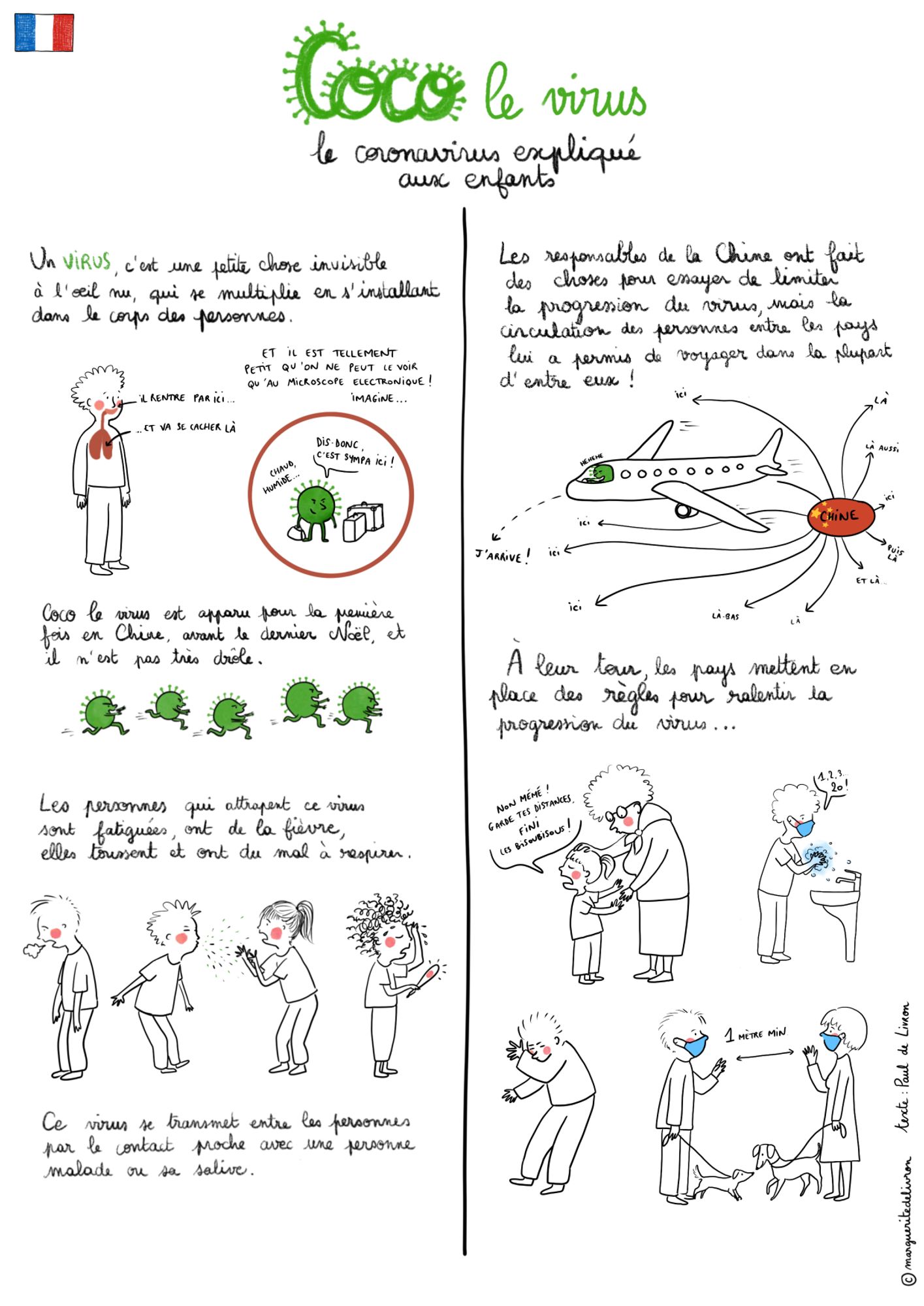 Cet outil vise à expliquer aux enfants le coronavirus. Il a été conçu pour aider les adultes à expliquer aux enfants comment mieux comprendre ce qu’est un virus, sa façon d’agir, les épidémies qu’il engendrent et la nécessité du confinement. Ce programme est soutenu par AtmoSud, l’ARS Paca et le réseau français de la Fondation Anna LINDH.