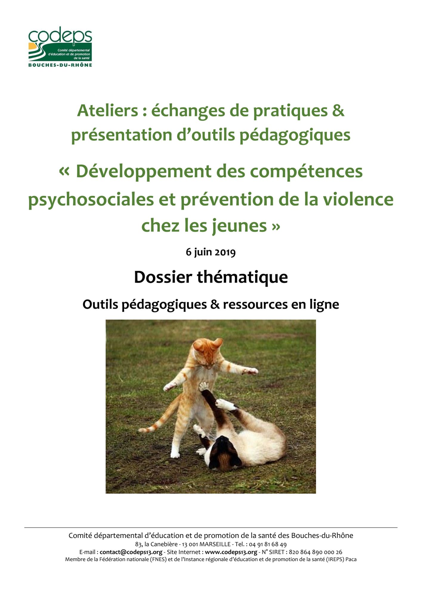 Dossier sur le développement des compétences psychosociales et la prévention de la violence chez les jeunes, réalisé dans le cadre de la journée d'échanges de pratiques organisée par le CoDEPS13 le 6 juin 2019