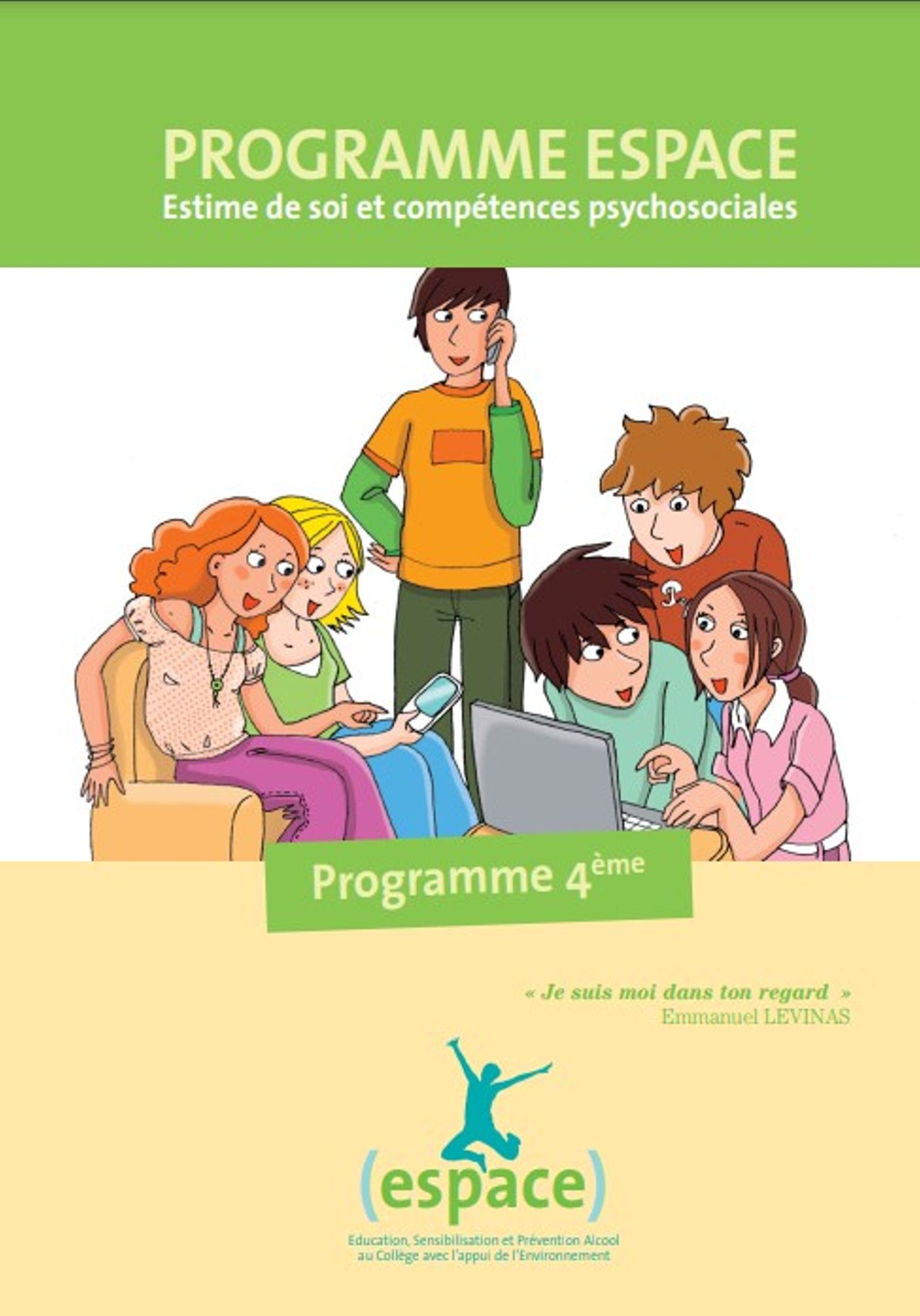 Le programme ESPACE (Education, Sensibilisation et Prévention Alcool au Collège avec l'appui de l'Environnement) propose des modules pédagogiques autour de l'estime de soi et des compétences psychosociales. 8 séquences sont proposées autour de l'amélioration de la communication, le développement de l'esprit critique, l'affirmation et la résolution des problèmes, le développement de la pensée créative. Chaque séquence propose une fiche enseignant et des fiches d'activités.