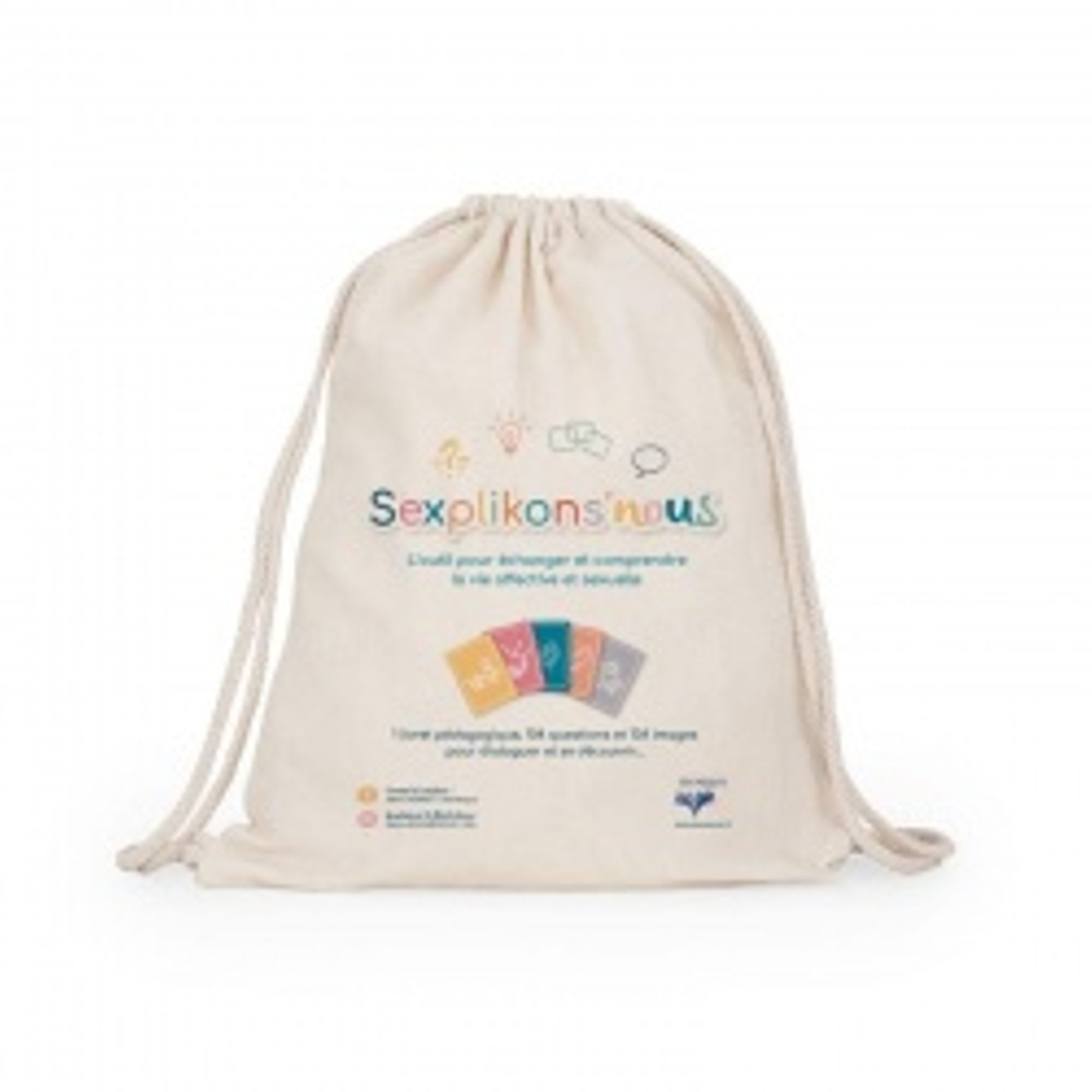 Contenu : Jeu en français, anglais, allemand, espagnol, 53 cartes, règles du jeu, silhouettes "personne à vulve" et "personne à pénis", dépliant ressources