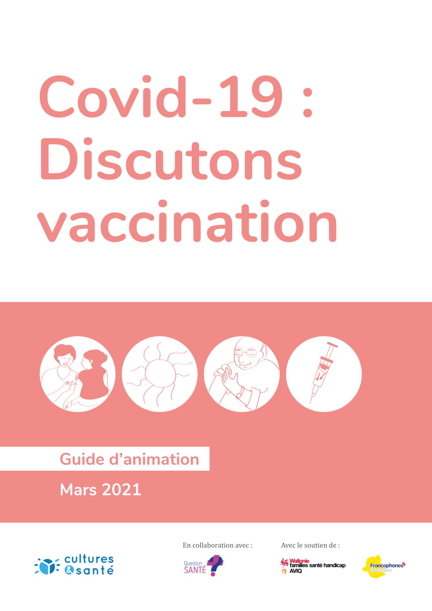 Ce guide d'animation publié par cultures&santé permet de soutenir une animation abordant la vaccination contre la Covid-19 et les enjeux de santé et de société qu’elle soulève. Animation qui propose aux participants de/d' : s'informer, mener une réflexion, exprimer un ressenti, développer leur esprit critique, identifier des ressources, tout cela en lien avec la vaccination contre la Covid-19.