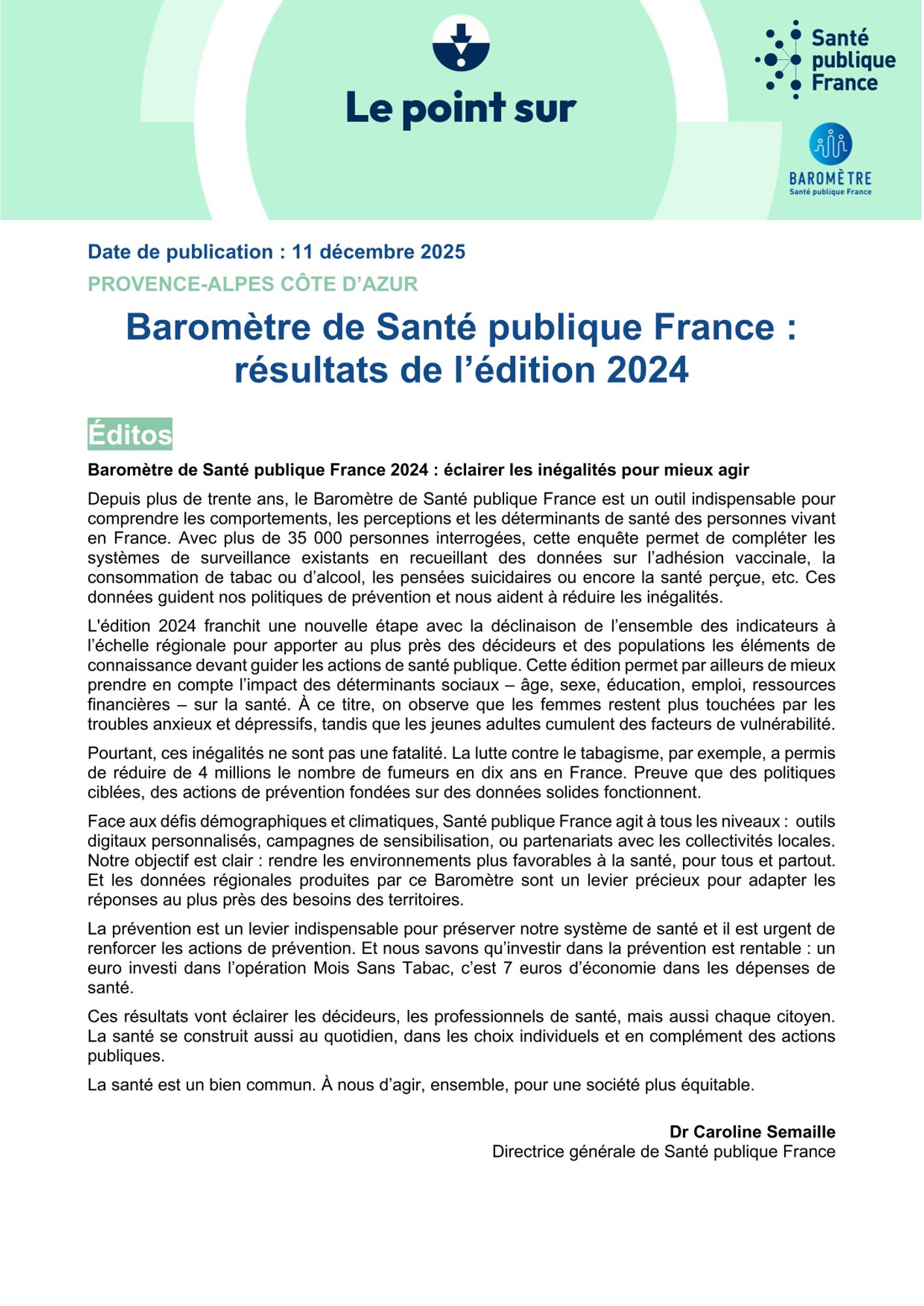 Édition 2024 du Baromètre de Santé Publique France