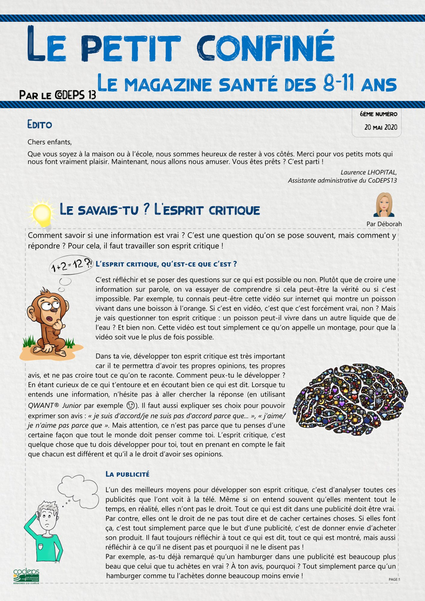Dans chaque numéro du « Petit Confiné », les enfants pourront découvrir les rubriques suivantes :