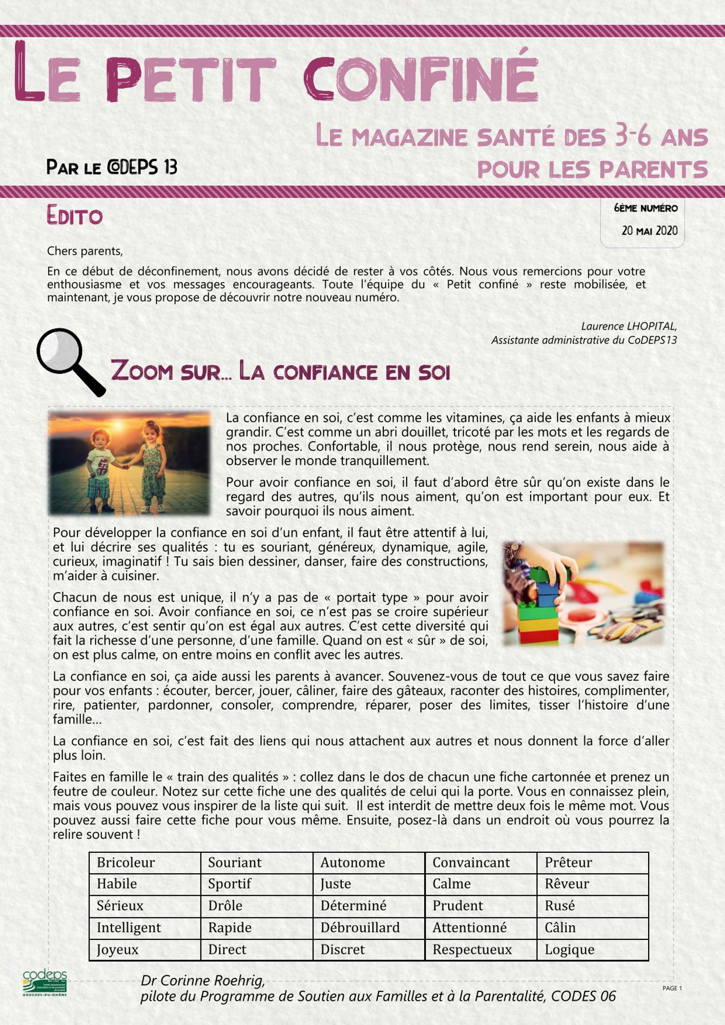 Dans chaque numéro du « Petit Confiné », vous pourrez découvrir les rubriques suivantes :