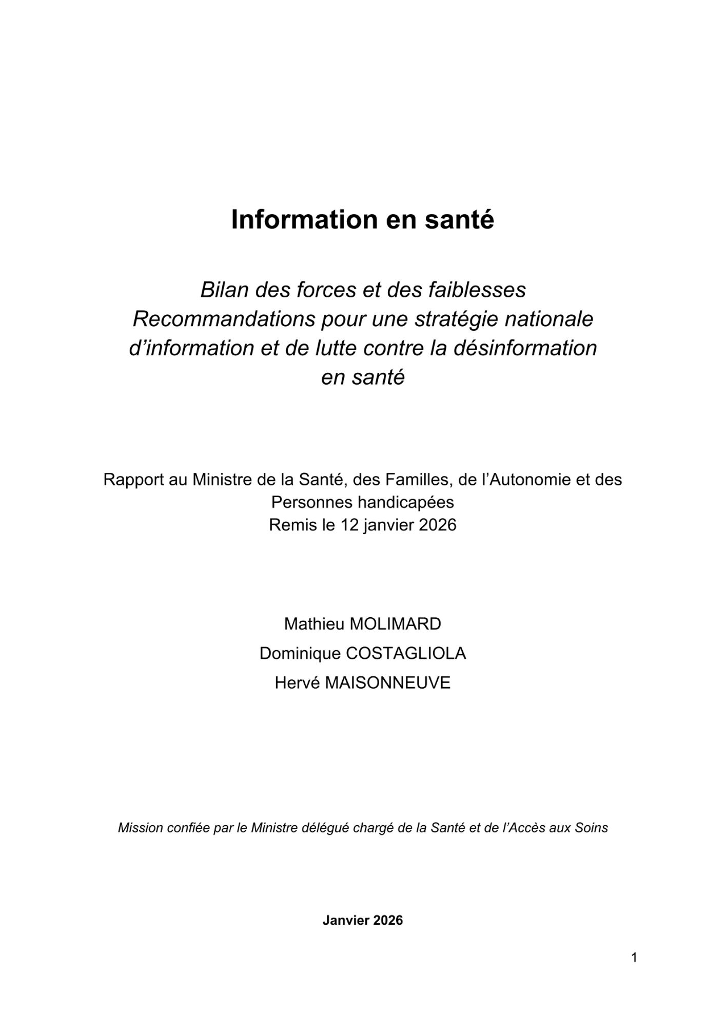 Rédigé dans le cadre de la mission sur la lutte contre la désinformation en santé, ce rapport propose 9 recommandations à la suite d’entretiens menés auprès de 270 personnes entre les mois d’août et novembre 2025 :