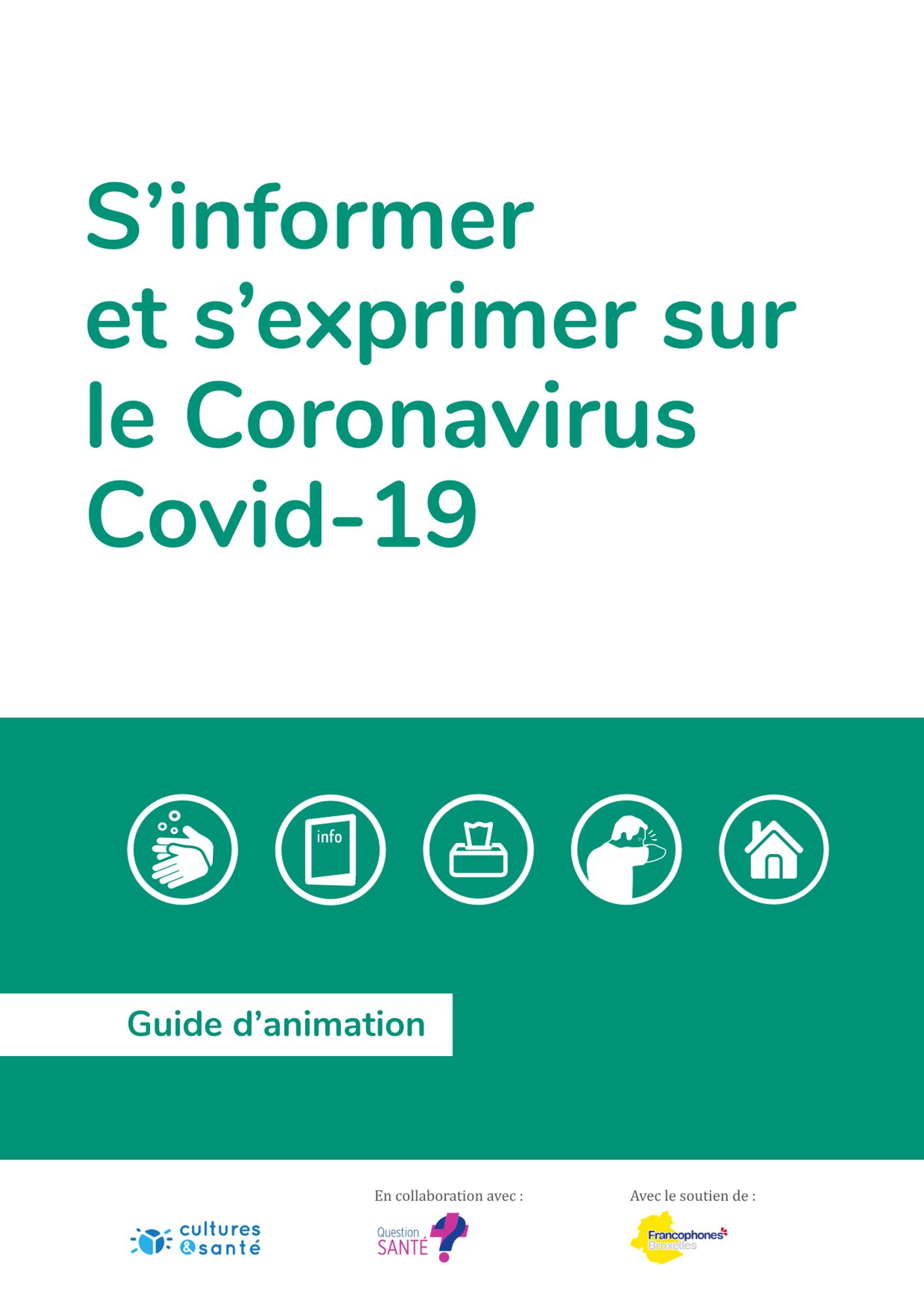 Ce guide, réalisé par Cultures&Santé en collaboration avec Question Santé et avec le soutien de la Commission Communautaire Française de la Région de Bruxelles-Capitale, vise à soutenir une animation portant sur le Covid-19 faisant l’objet d’une épidémie mondiale. L’animation peut permettre à ses participant·es de :