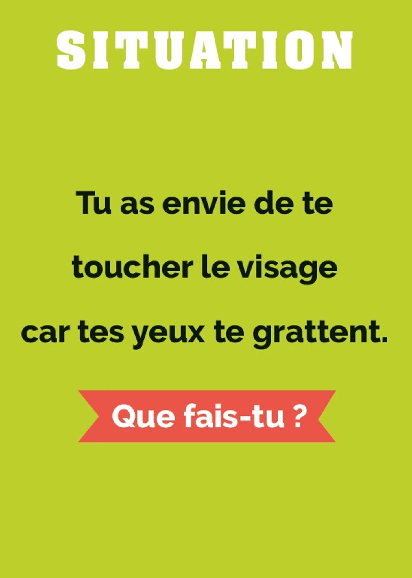 - CARTES OUPS : le joueur qui tire cette carte observe la scène représentée et explique ce qui n’est pas conforme aux gestes barrières ;