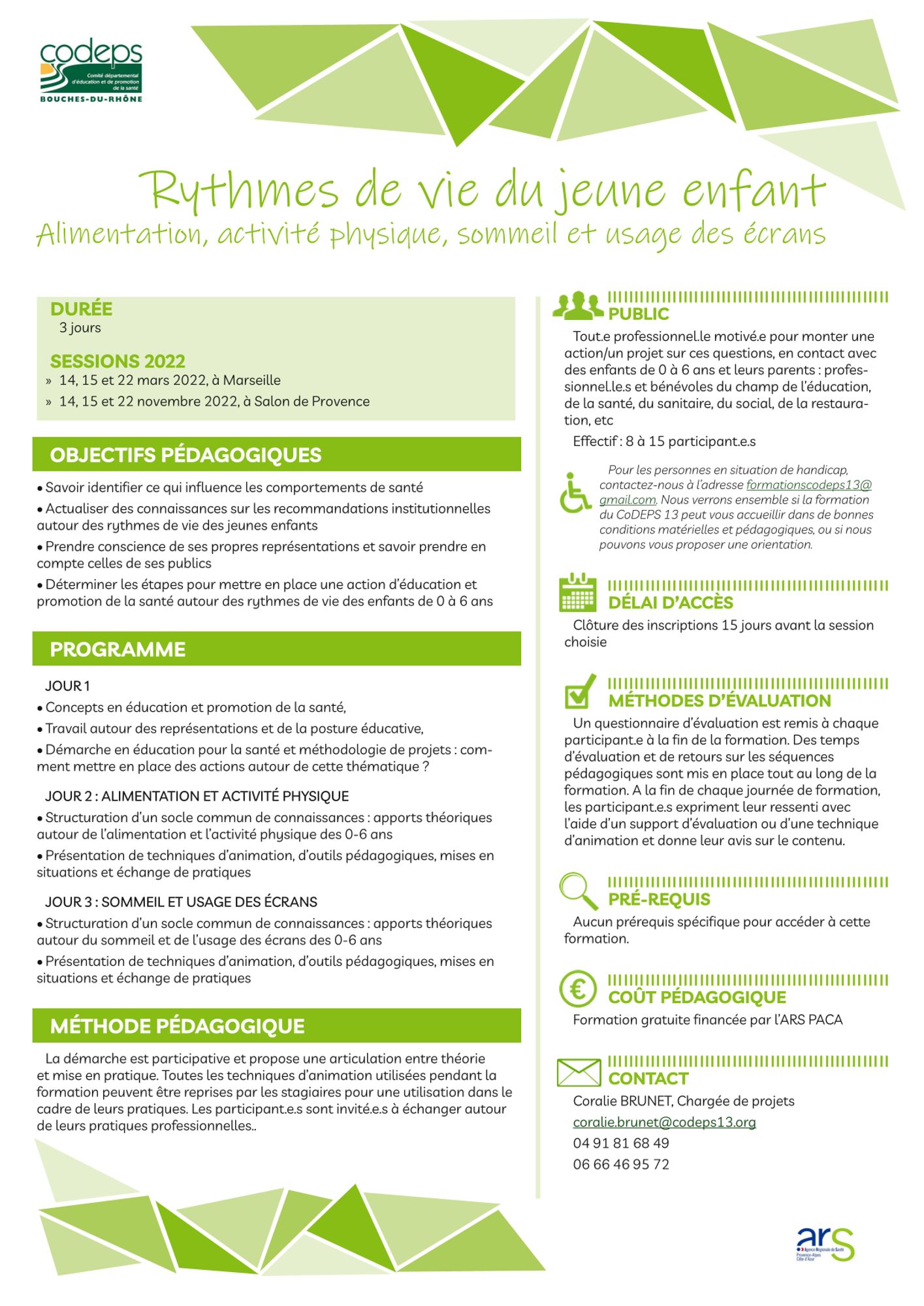 - Déterminer les étapes pour mettre en place une action d’éducation et promotion de la santé autour des rythmes de vie des enfants de 0 à 6 ans et de leurs parents