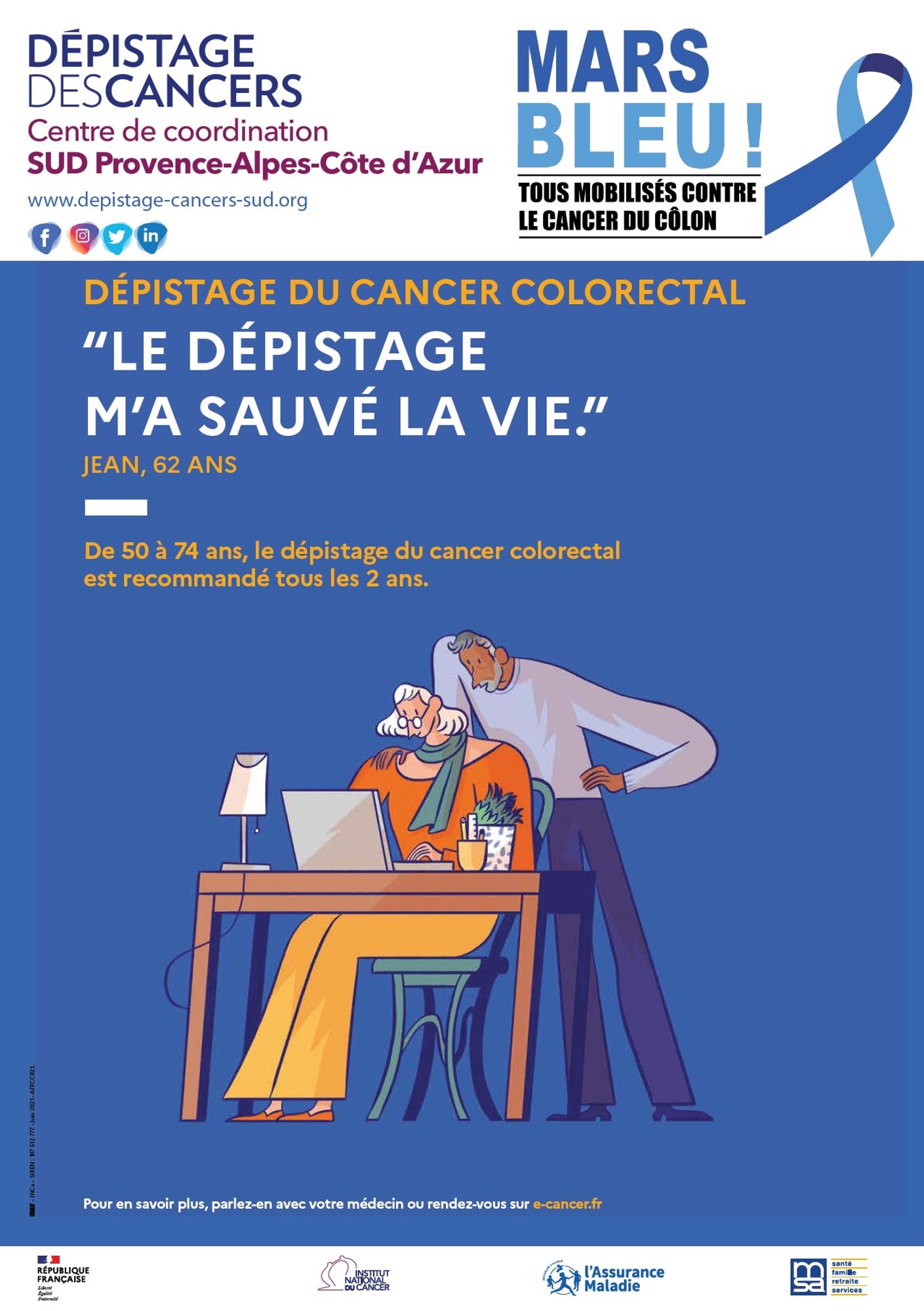 « Mars Bleu » est le mois de la mobilisation contre le cancer colorectal. L'opération vise à sensibiliser la population et les professionnel.le.s de santé à l’importance du dépistage.