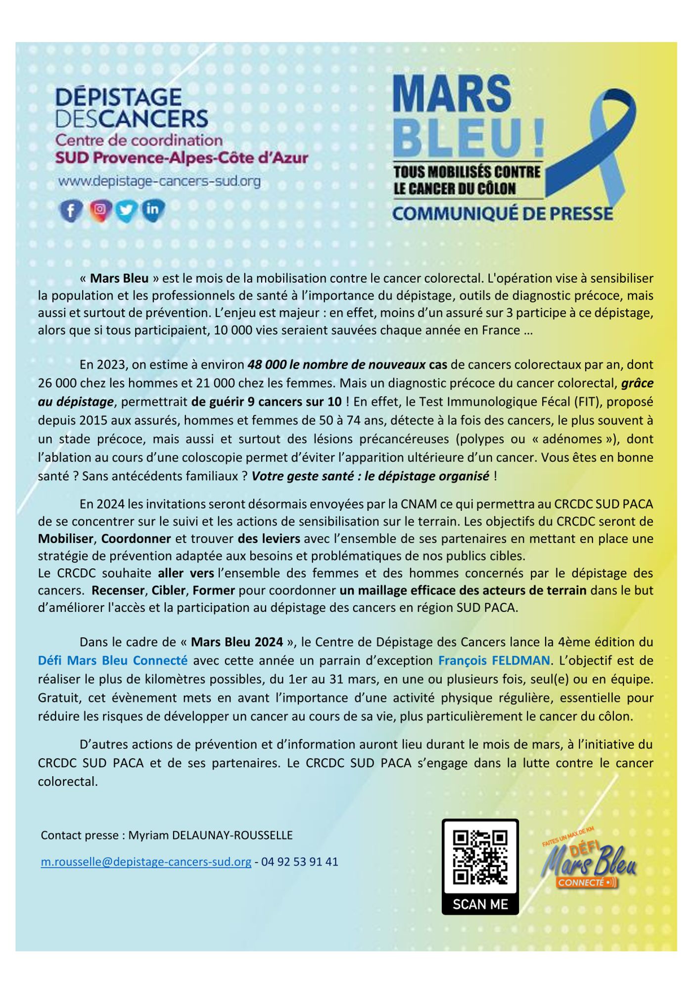 Mars Bleu c’est le mois du cancer colorectal, un cancer qui touche chaque année plus de 43 000 personnes, soit près de 120 cas diagnostiqués par jour.