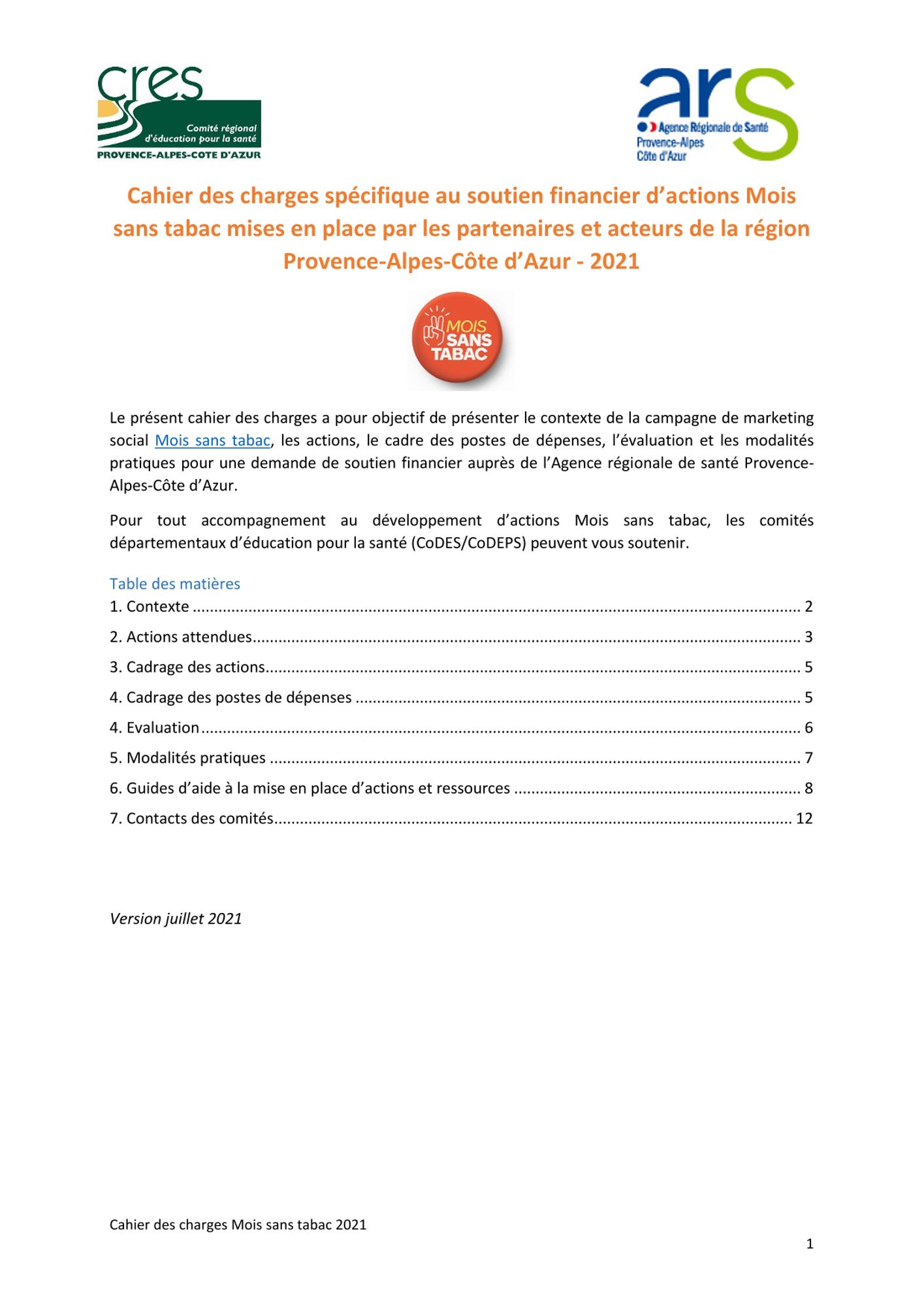 Il a pour objet de soutenir les acteurs de terrain Mois sans tabac pour la mise en oeuvre de leurs actions.