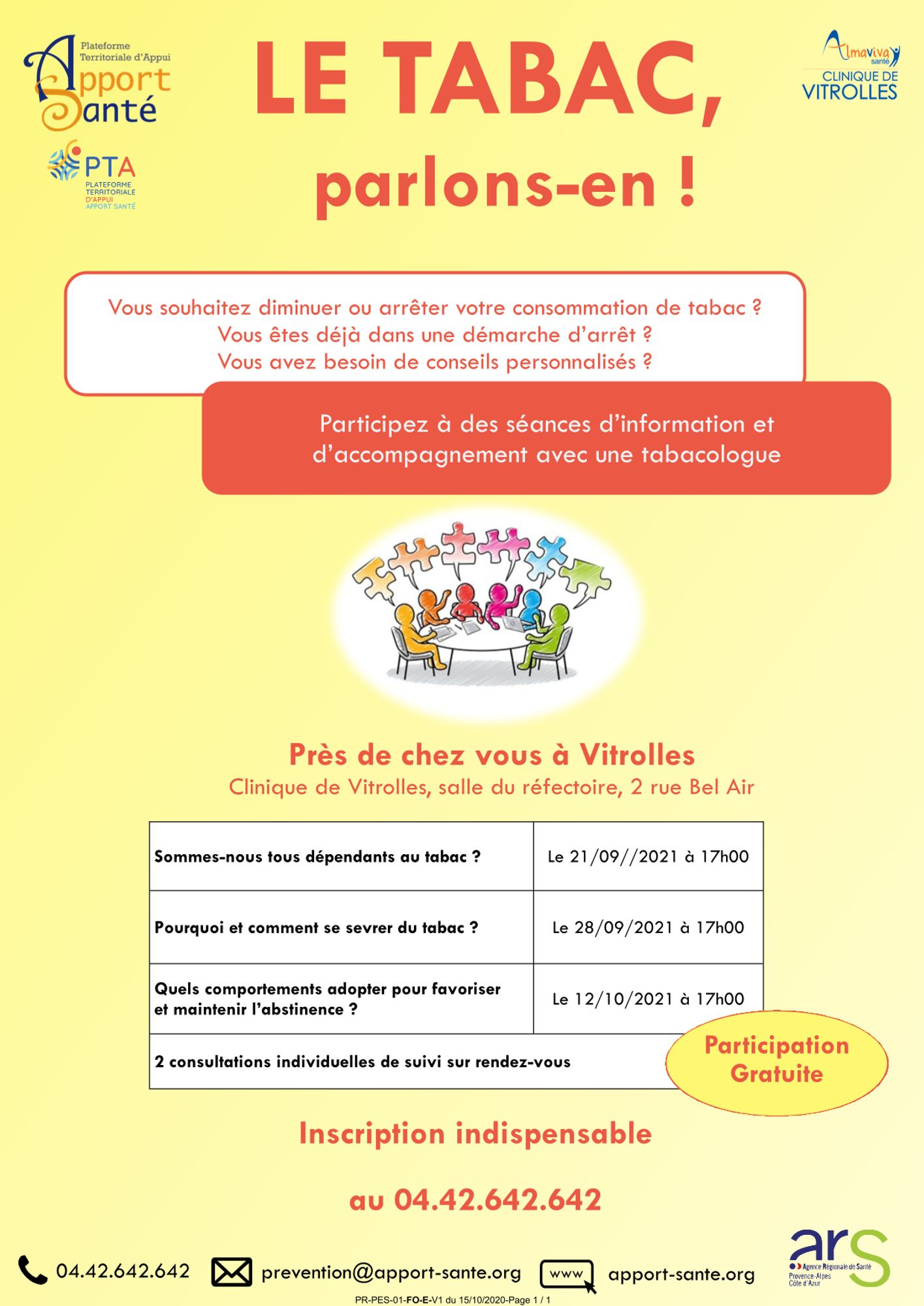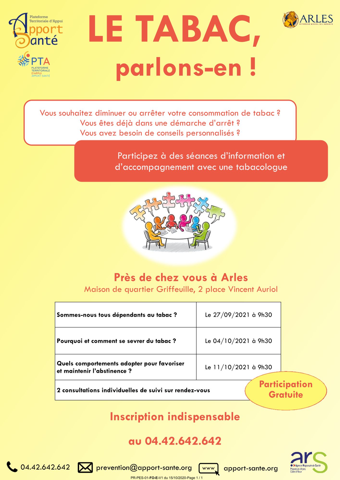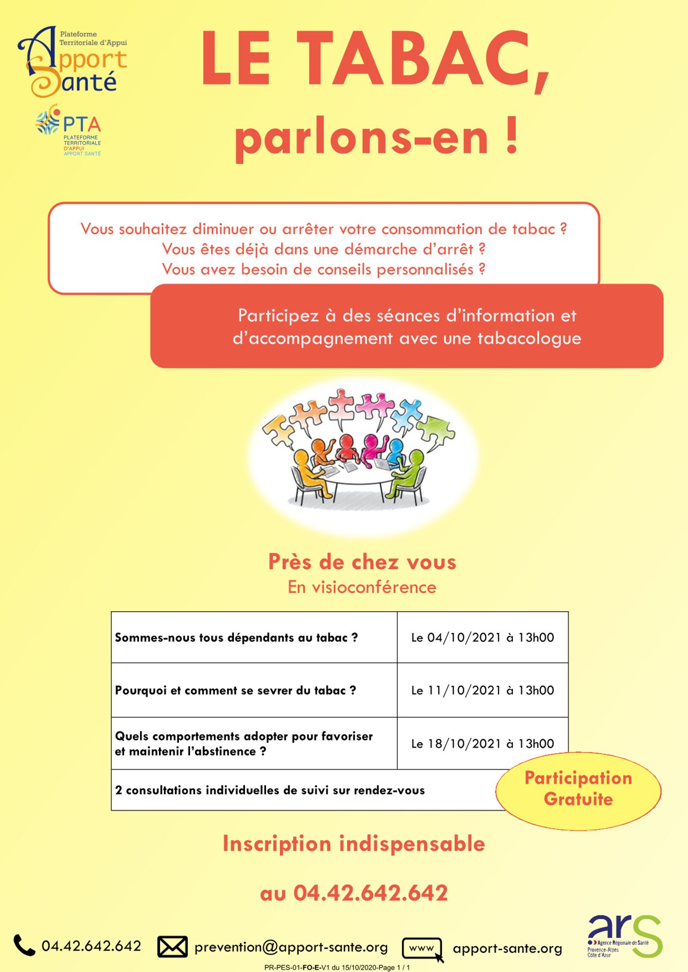 Apport Santé a élaboré u n programme d’aide à l’arrêt du tabac auprès des personnes majeures en situation de précarité et/ou isolées et/ou présentant des difficultés dans leur parcours de santé.