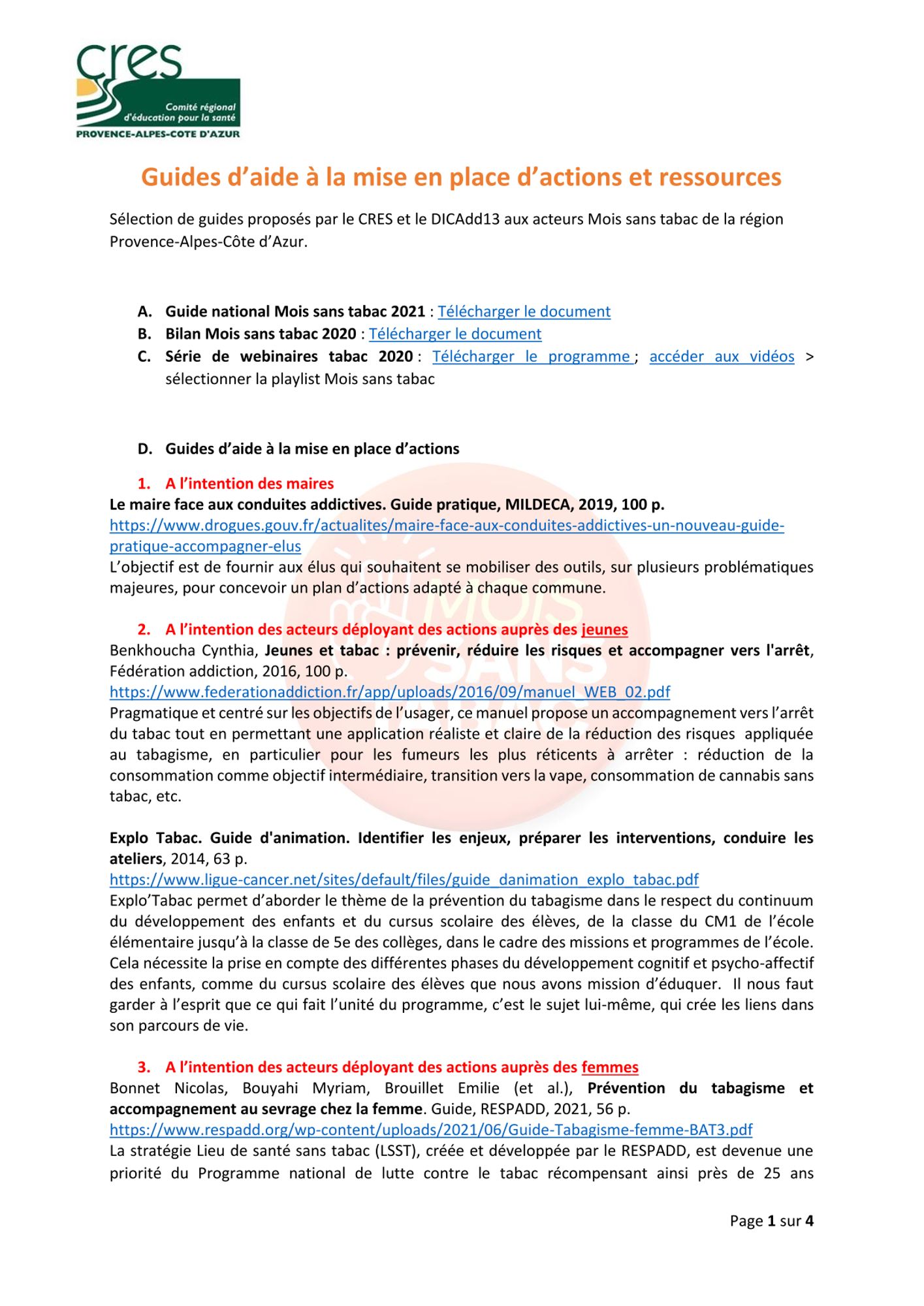 Moi(s) sans tabac en région Paca Guide d'aide à la mise en place d'actions & ressources (214.3 Ko) Moi(s) sans tabac en région Paca Contact : Marion Sylvain