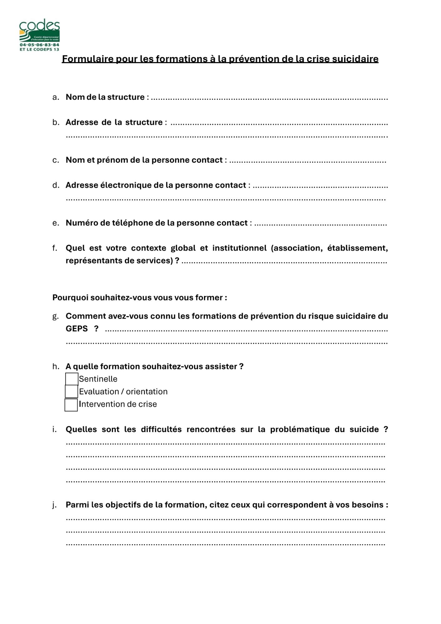 Pour assurer la formation en prévention du suicide sur son territoire, l’ARS PACA a choisi, conformément aux instructions ministérielles, de s’appuyer sur les trois modules mis en place par le Groupement d’étude et de prévention du suicide (GEPS) : Sentinelle, Évaluation / Orientation et Intervention de crise.